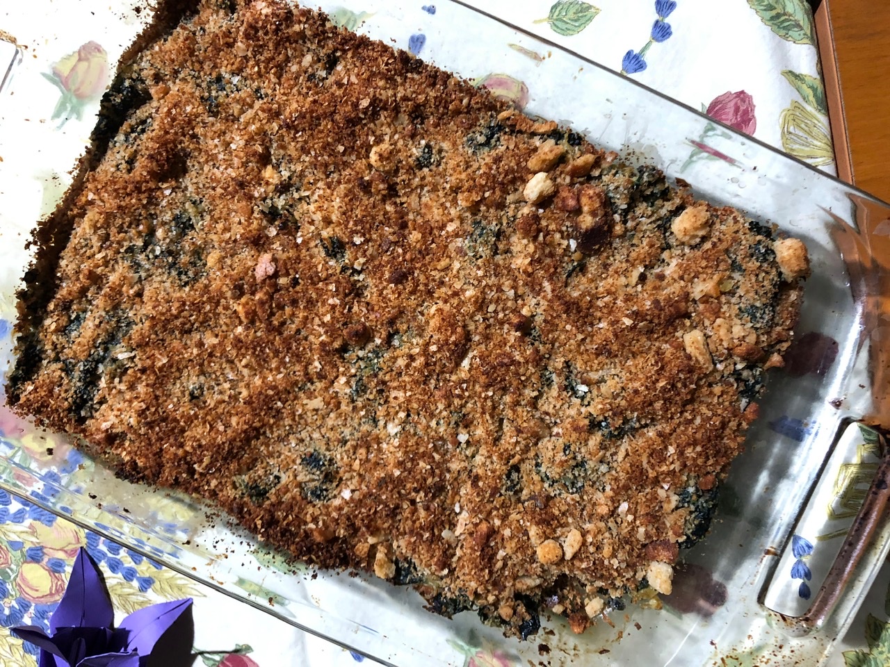 Tammy made Swiss Chard and Kale Gratin. The richness of the Swiss chard and kale cooked in cream was offset with a yummy garlic parmesan breadcrumb crust that also added some nice crispy texture. So good.
