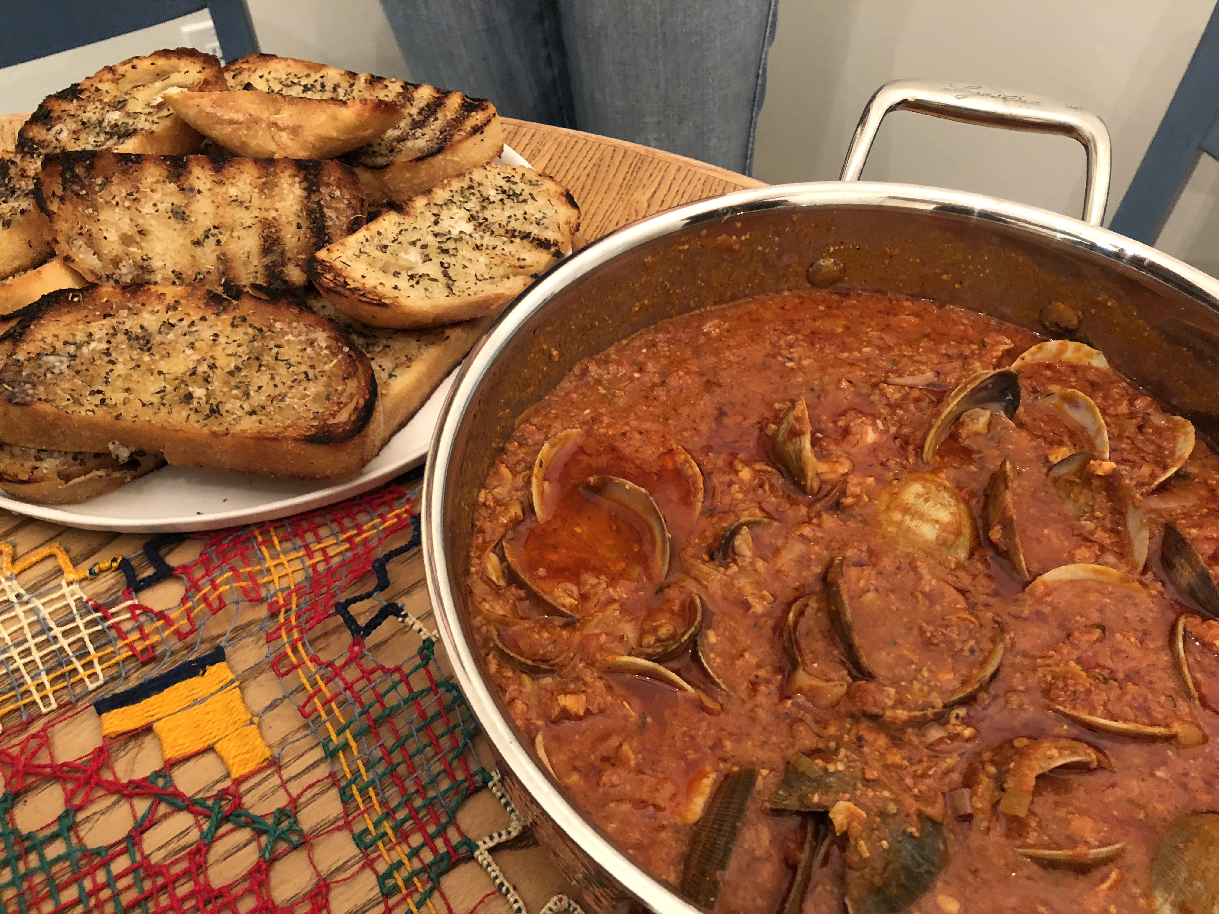 Heather made Clams with Chorizo, Leeks, Tomato, and White Wine. I loved the strong salty and acidic qualities of this dish. It felt like the perfect thing to warm you from the inside during this time of year. So good with the garlic bread for sopping up the chunky sauce. This was one of my favorites of the night, and I could be happy making a meal of it all on its own.