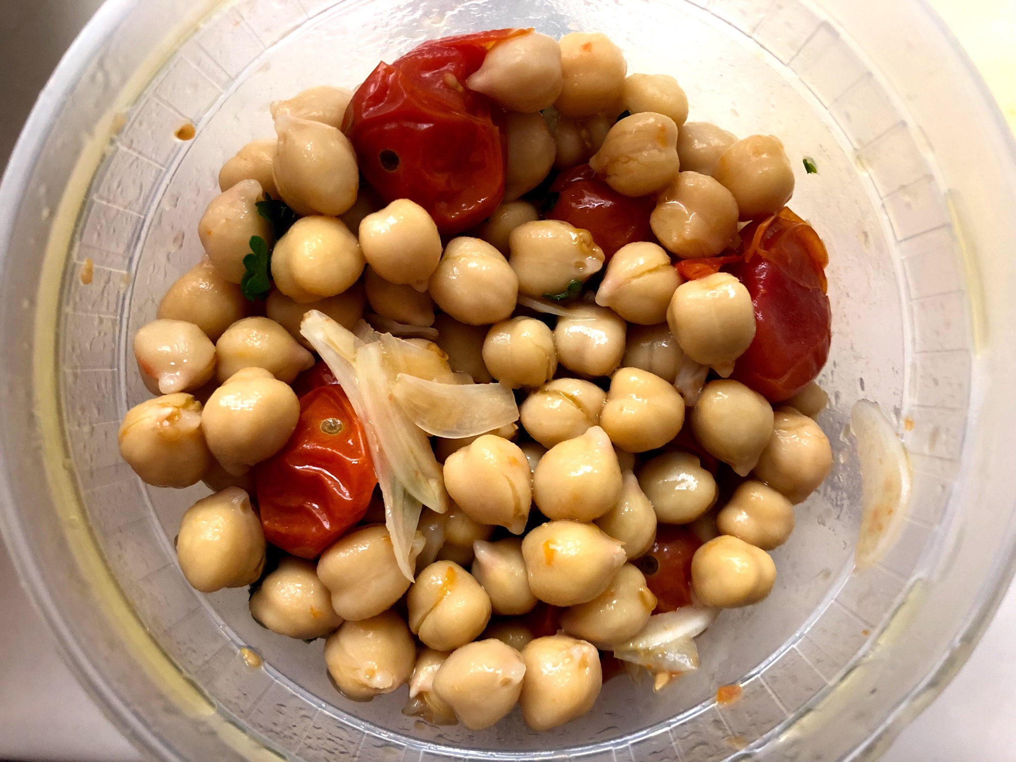 Riley made Garbanzos with Cherry Tomatoes. I felt these needed salt, and once I added the salt, they were ok but nothing to write home about. They’d be a fine side, but not like to be the start of a meal.