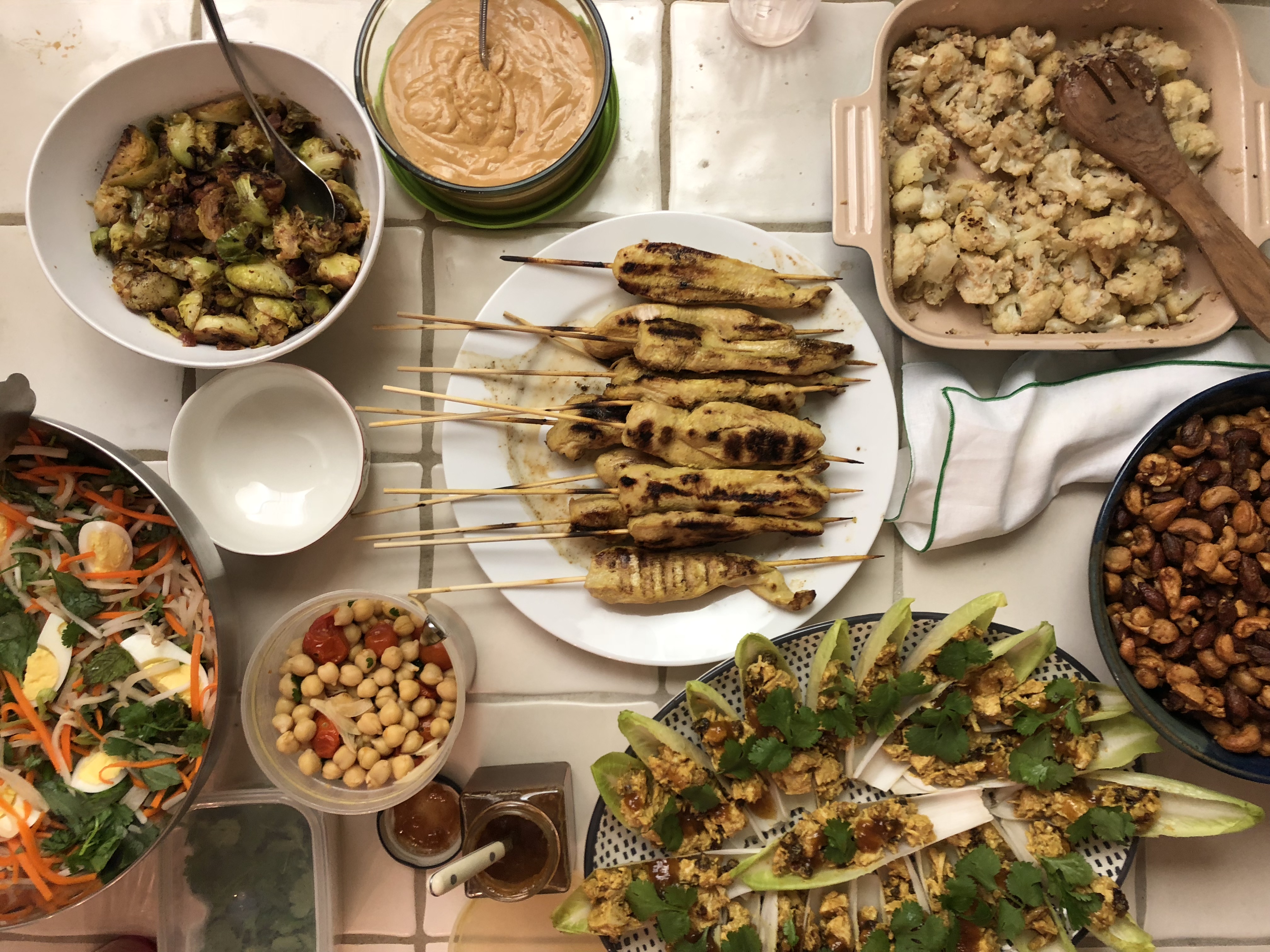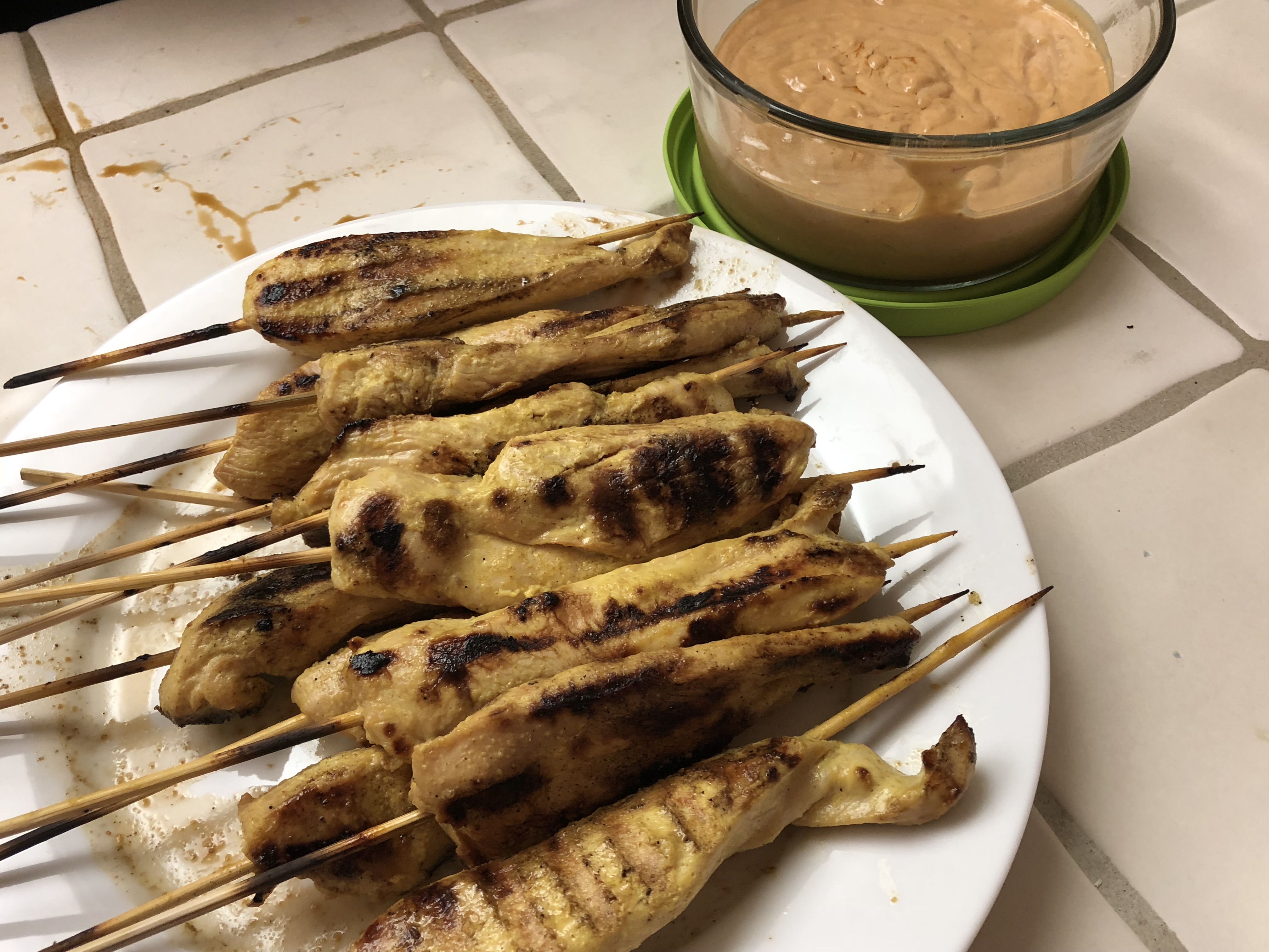 John made Chicken Satay with Fake-Ass Spicy Peanut Sauce. The chicken on its own was really tasty, and also really good with the added peanut sauce. And it’s a good thing, because the recipe made a giant heap of peanut sauce. When Bourdain said do not skimp on the peanut sauce, he was not kidding.