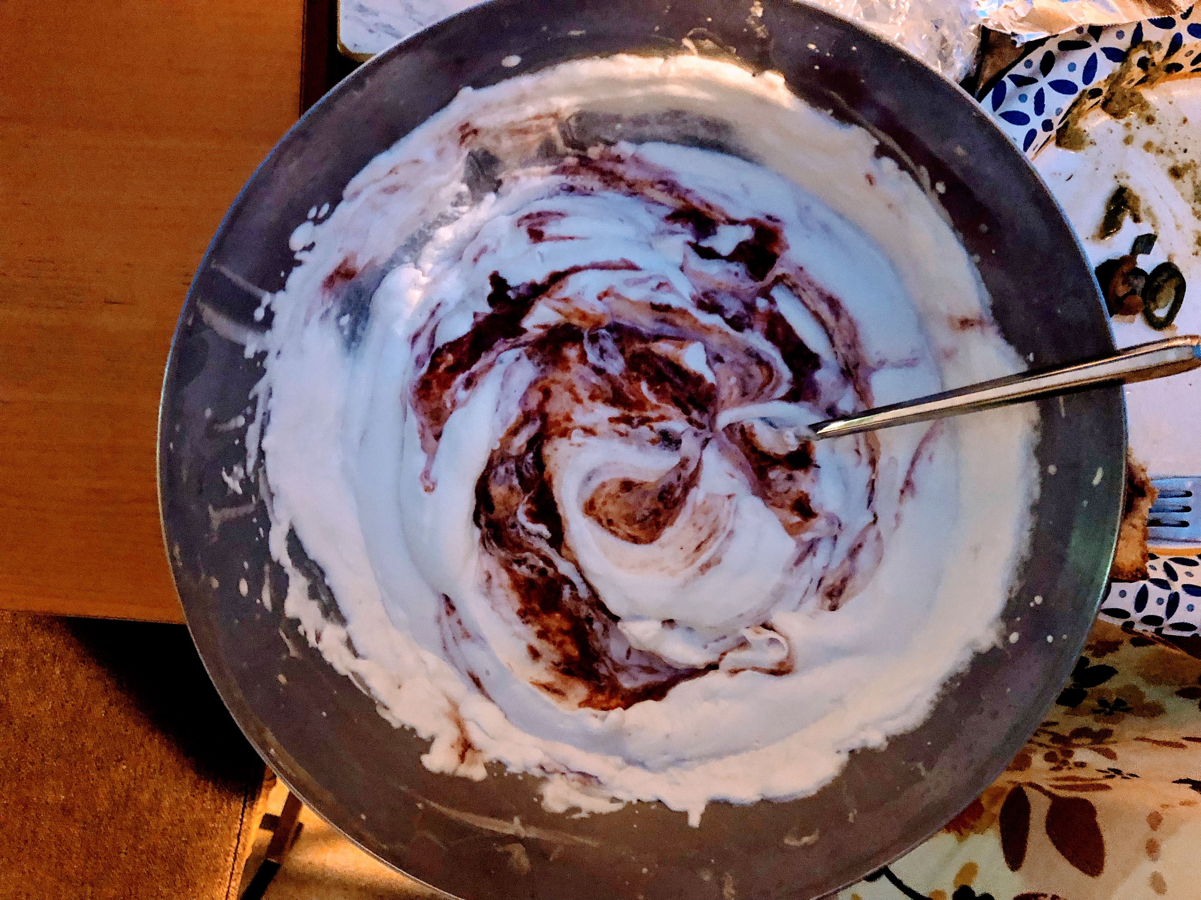 Sheana made Strawberry-Elderflower Fool. The recipe calls for only 1 TBSP of sugar, so depending on your strawberries, can end up being not very sweet. I don’t mind a dessert that’s not overly sweet, but I found this one on its own was not sweet enough. It was, however, pretty good with some of the Salty Caramel drizzled in. And also quite nice as a creamy topping for the Blackberry Sesame Cake.