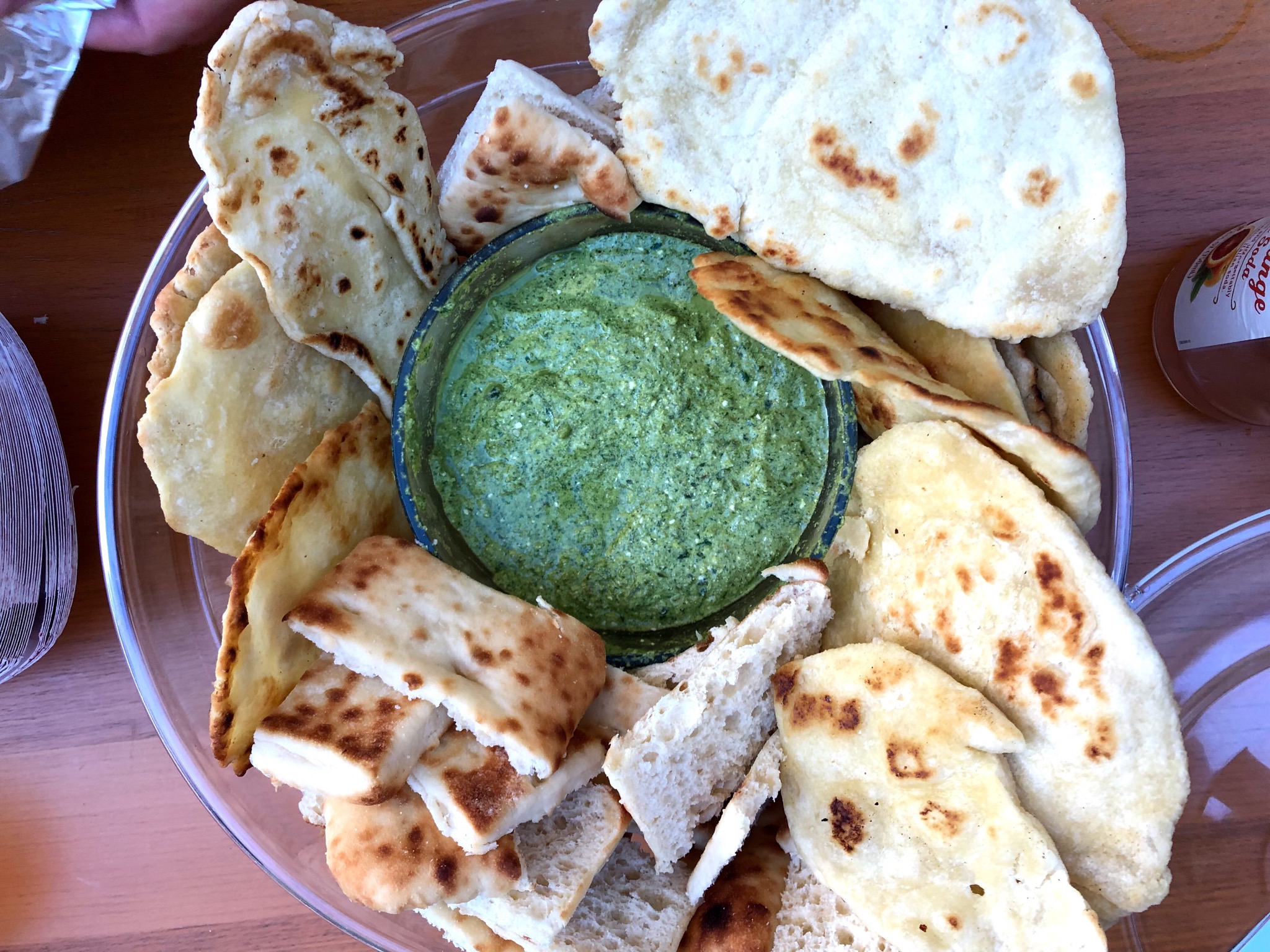 Shayna made Poblano-Feta Dip. She bought pita bread to accompany the dip, but then found the time to make the Baco Bread, which she said was actually quite easy. I was glad for that, as the earthy, tangy dip was nice on the pita, but even better with the fantastic homemade flatbread. Others must have agreed with me, because we demolished the flatbread and left a bowl of lonely pitas.