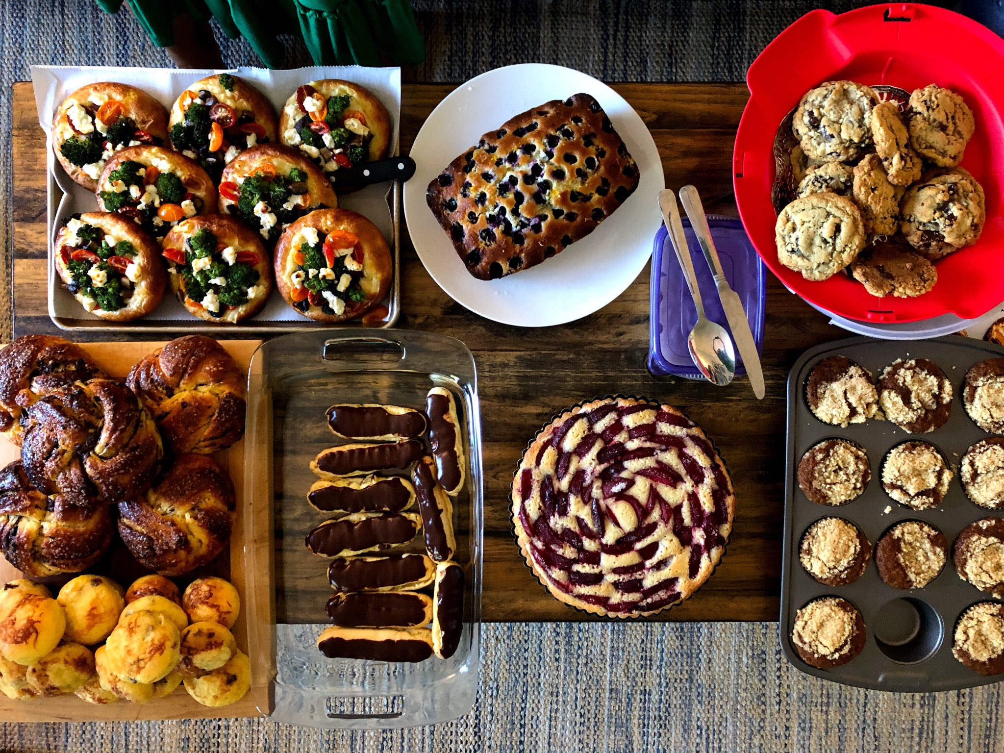And having learned from our past mistakes, Jennifer made a chicken milanese main dish and Shayna provided a complementary arugula tomato salad so that we could start with a savory base before getting into the baked bonanza. We also had a couple savory selections from the cookbook, so it turned out to be a very nicely balanced meal… and stunning to look at!
