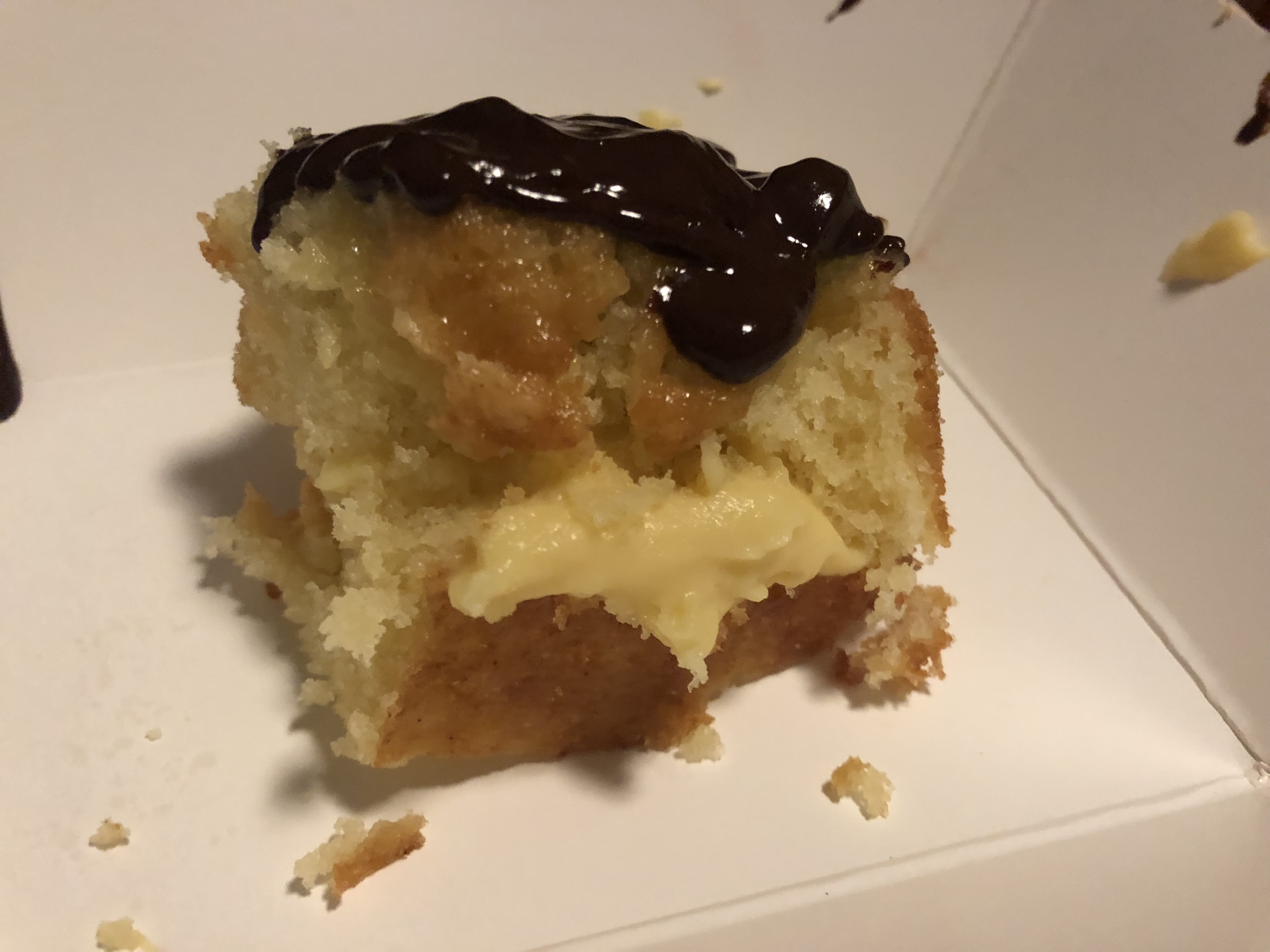 Anthony made Vanilla Pastry Cream. He combined this with yellow cake and chocolate sauce (not from the cookbooks) to make his version of Boston Cream Pie. The cream was good, Anthony’s cakes are always deliciously moist, and I really liked that the chocolate sauce was more darkly bitter with just a touch of sweet.