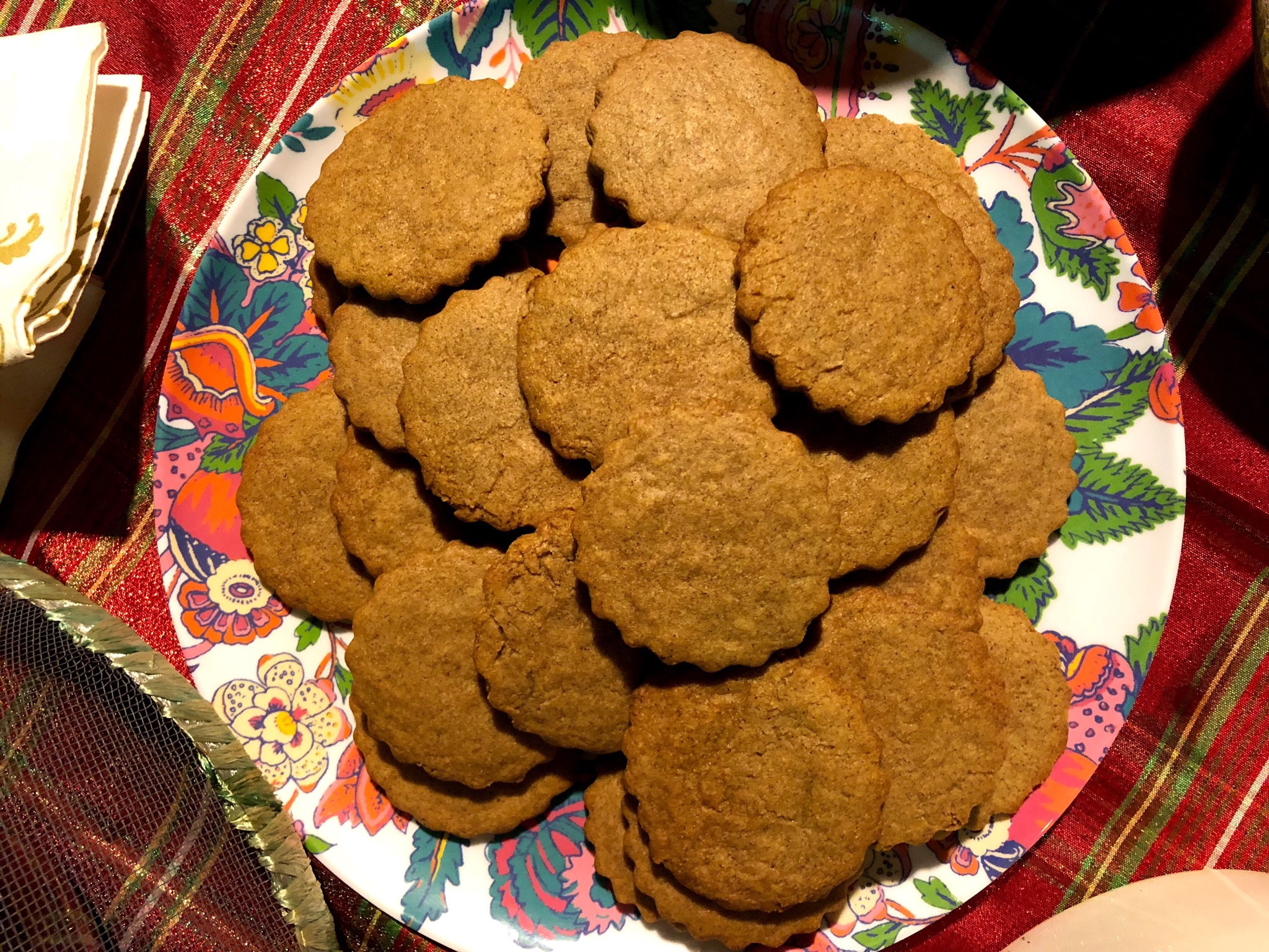 Laura made Speculoos. These are spicy (cinnamon, ginger, clove) brown sugar cookies. I’ve had store-bought Speculoos, but never homemade before. They will never be my everyday cookie of choice, but there’s something about them that is great with strong hot coffee at Christmastime.