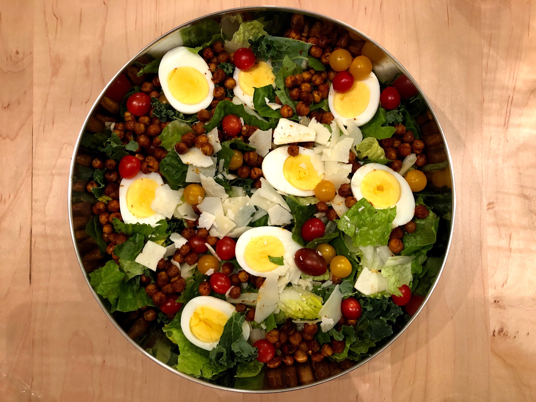 I made Crispy Harissa Chickpea Caesar Salad. I liked the body that the addition of kale lent to the salad, and the spicy, crispy chickpeas were a fun replacement for the typical crouton. The dressing was yogurt-based with just a little mayonnaise, but did the trick as a caesar dressing.