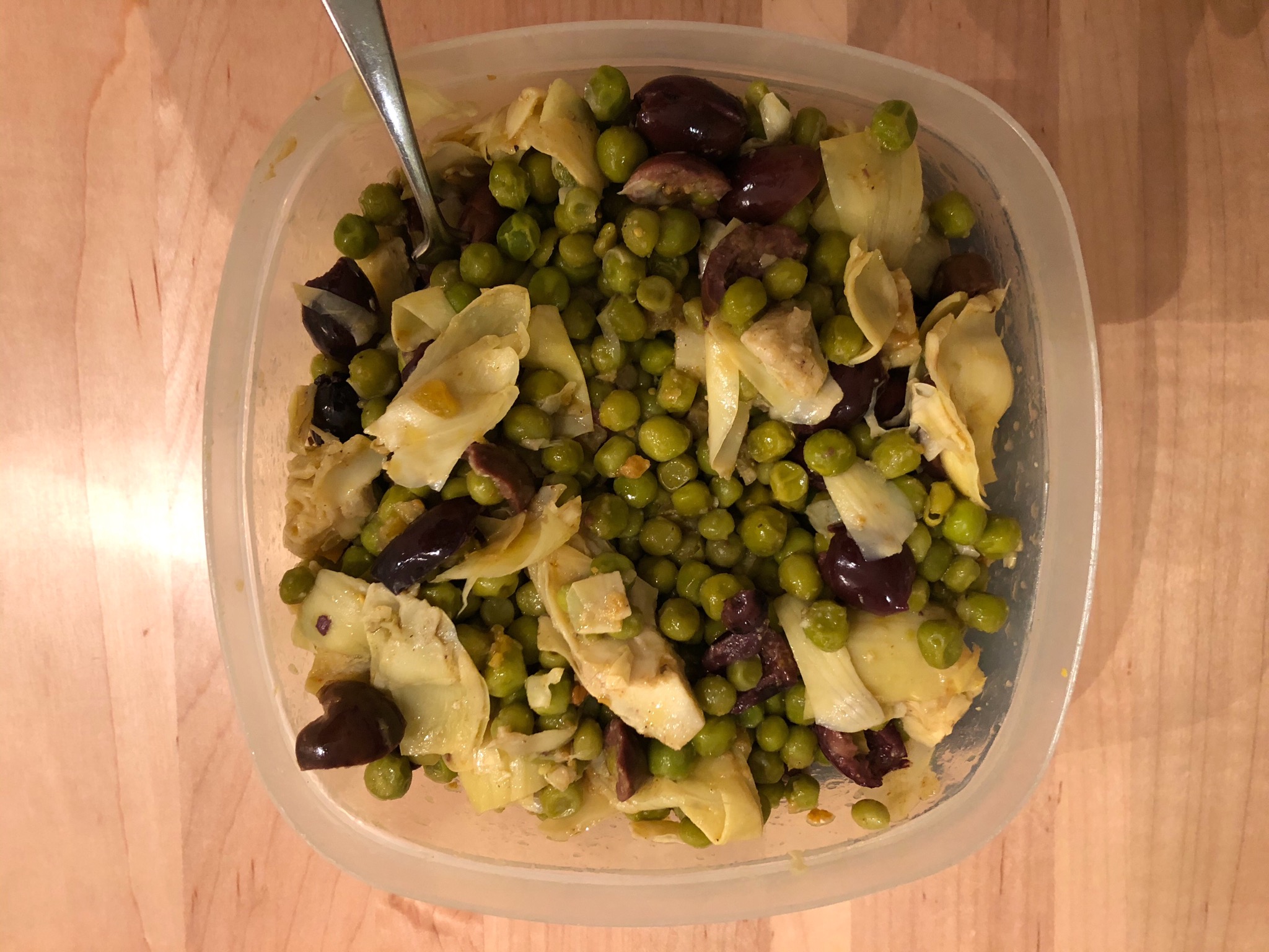 Riley made Artichoke, Green Peas and Preserved Lemon Salad. At first I thought this sounded like something of a random bunch of stuff mixed together, but the more I ate it the more it grew on me. I even went back for seconds!