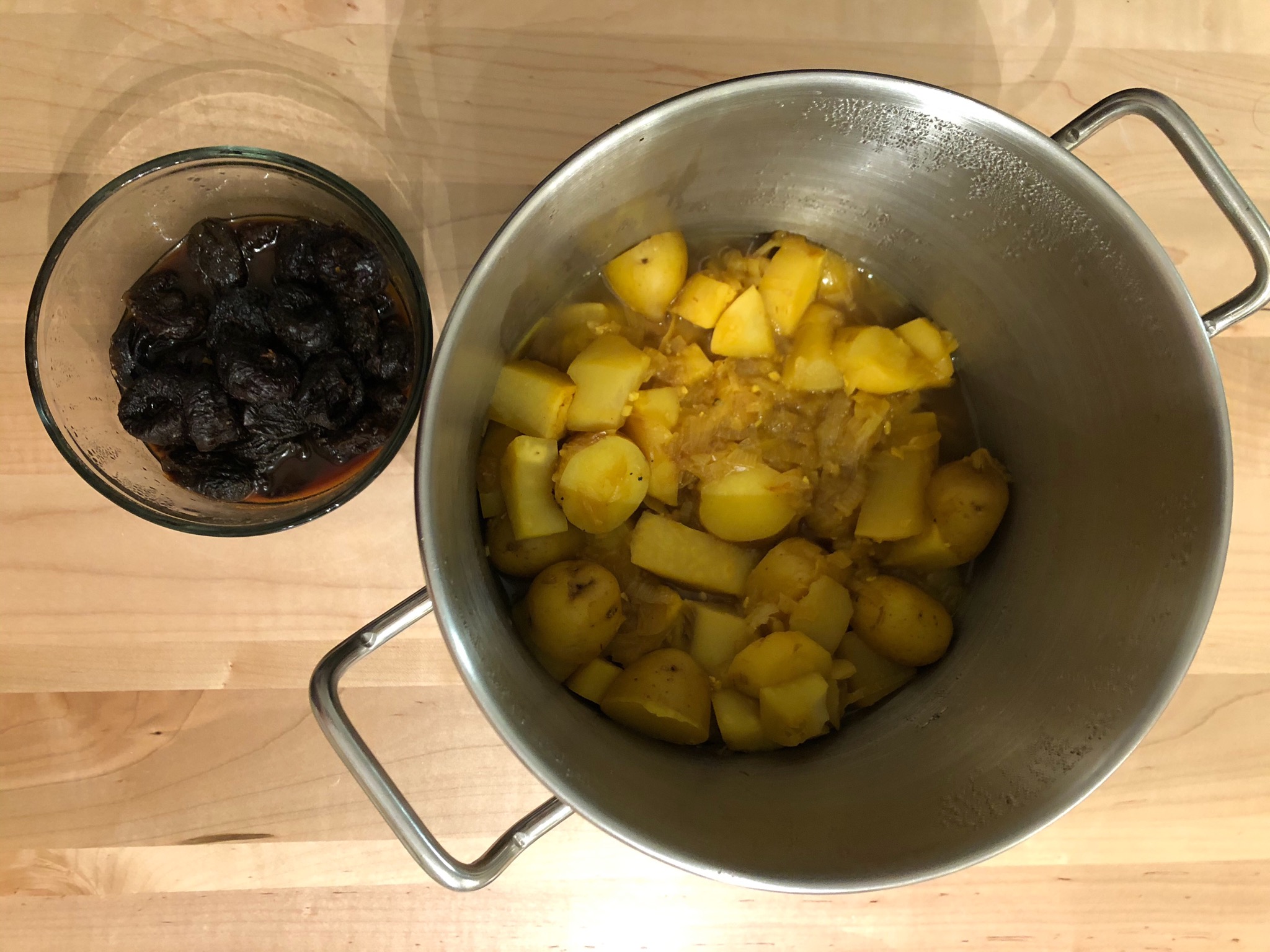 John made Root Vegetable and Prune Tagine. The honey cinnamon prunes were what made this one for me, bringing sweetness and a little bit of chew to a root vegetable dish that otherwise would have been a bit drab.