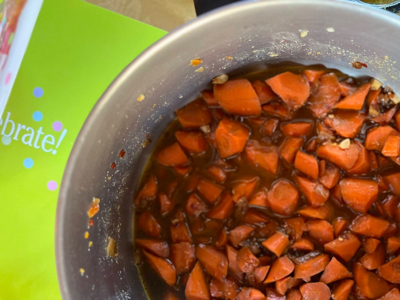 Nick made Gina’s Glazed Ginger Carrots. He did have to tinker with the recipe – removing the carrots so they wouldn’t get overcooked while he reduced the glaze. But the end result was gingery sweet decadence. As one Cookbook Clubber noted however – with brown sugar, maple syrup, and molasses… probably not very good for you.