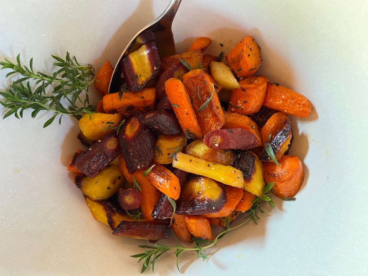 John made Honey-Roasted Carrots. I think these might have suffered from the unlucky circumstance of my trying them just after eating Gina’s Glazed Ginger Carrots. Compared to those, the Honey-Roasted Carrots just seemed a bit plain.