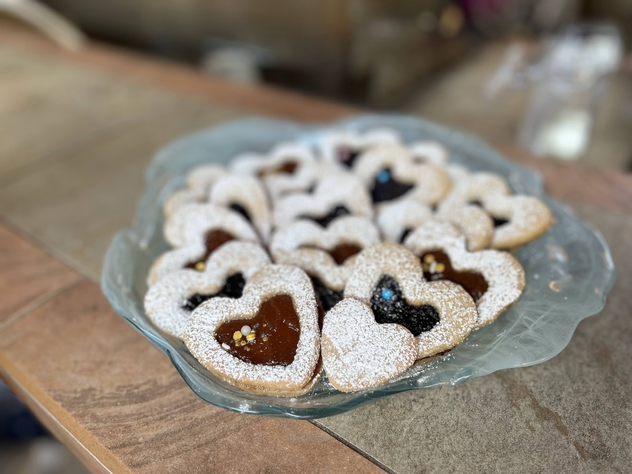 Heather and Harper also made Raspberry Linzer Hearts… but even better because Heather used three different kinds of her own homemade jam – cherry hibiscus rose, blueberry lavender, and loquat star anise. The two I got to try were fantastic, and I deeply regretted not getting to try all three.