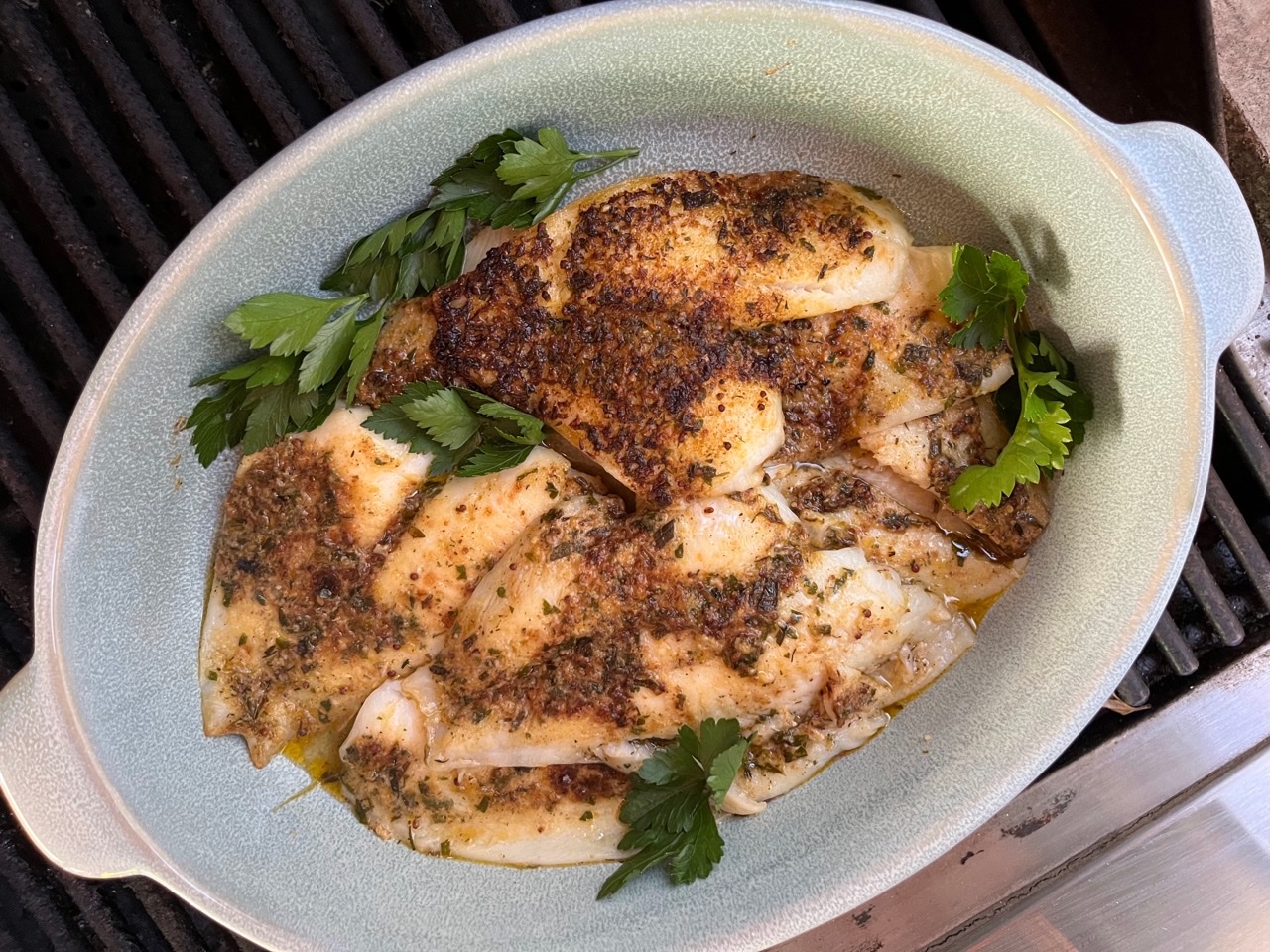Heather and Harper made Lemon-Mustard Broiled Flounder. One of the best dishes of the meal for me – the mustard, lemon zest, and parsley butter was incredible broiled into the fish and with a bit more dabbed on top. Even my husband loved it, and he claims not to like cooked fish or mustard.