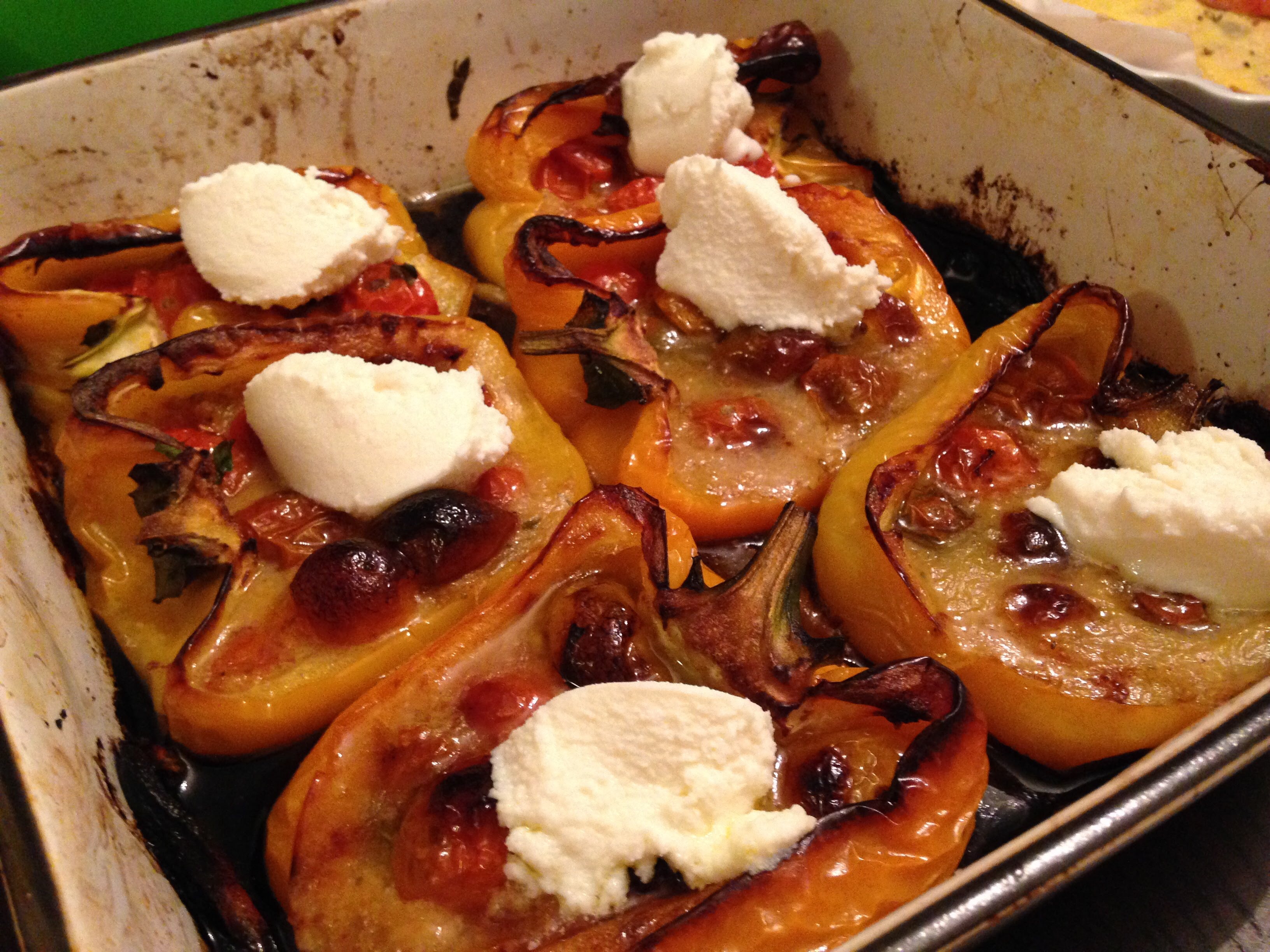 Sheana made Oven-Charred Peppers with Tomatoes. Topped with a touch of ricotta, these literally melted in your mouth. There was all sorts of yumminess in the pan juices, including thin lemon slices that got nicely charred.