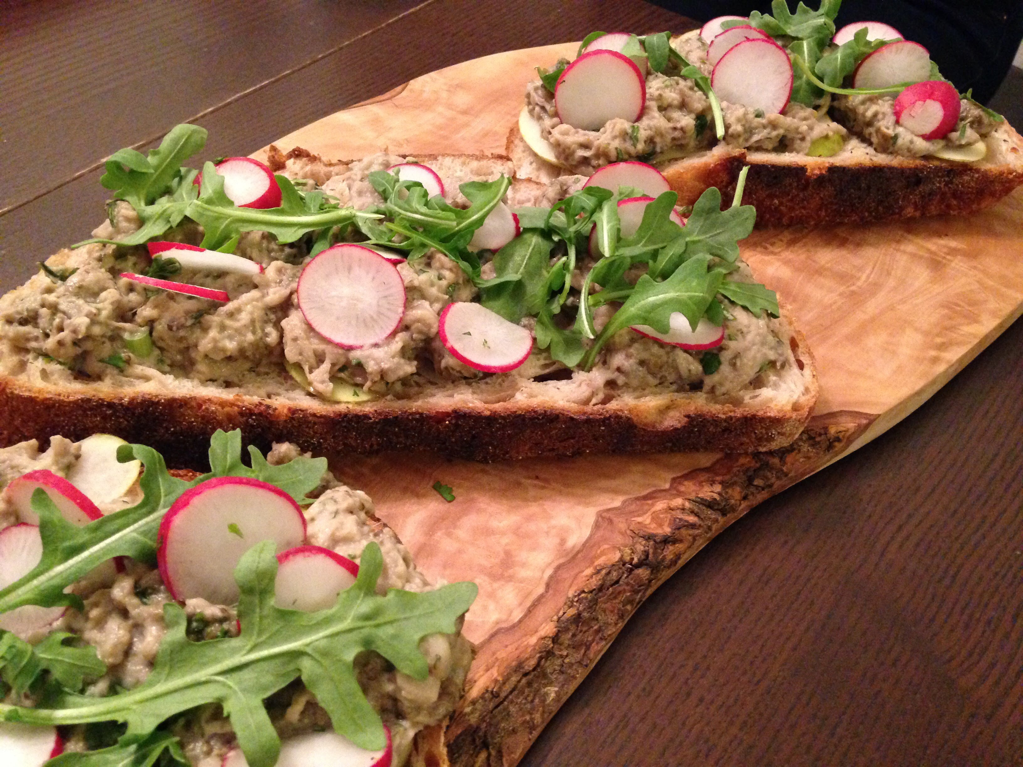 Yasmin made Roasted Ginger-Eggplant Tartines. As you can see, she did an amazing job with the presentation – they look just like the picture on the website, and she plated them on a gorgeous rustic wooden platter! I really liked how strongly the ginger flavor came through, and the crunch that the radish added.