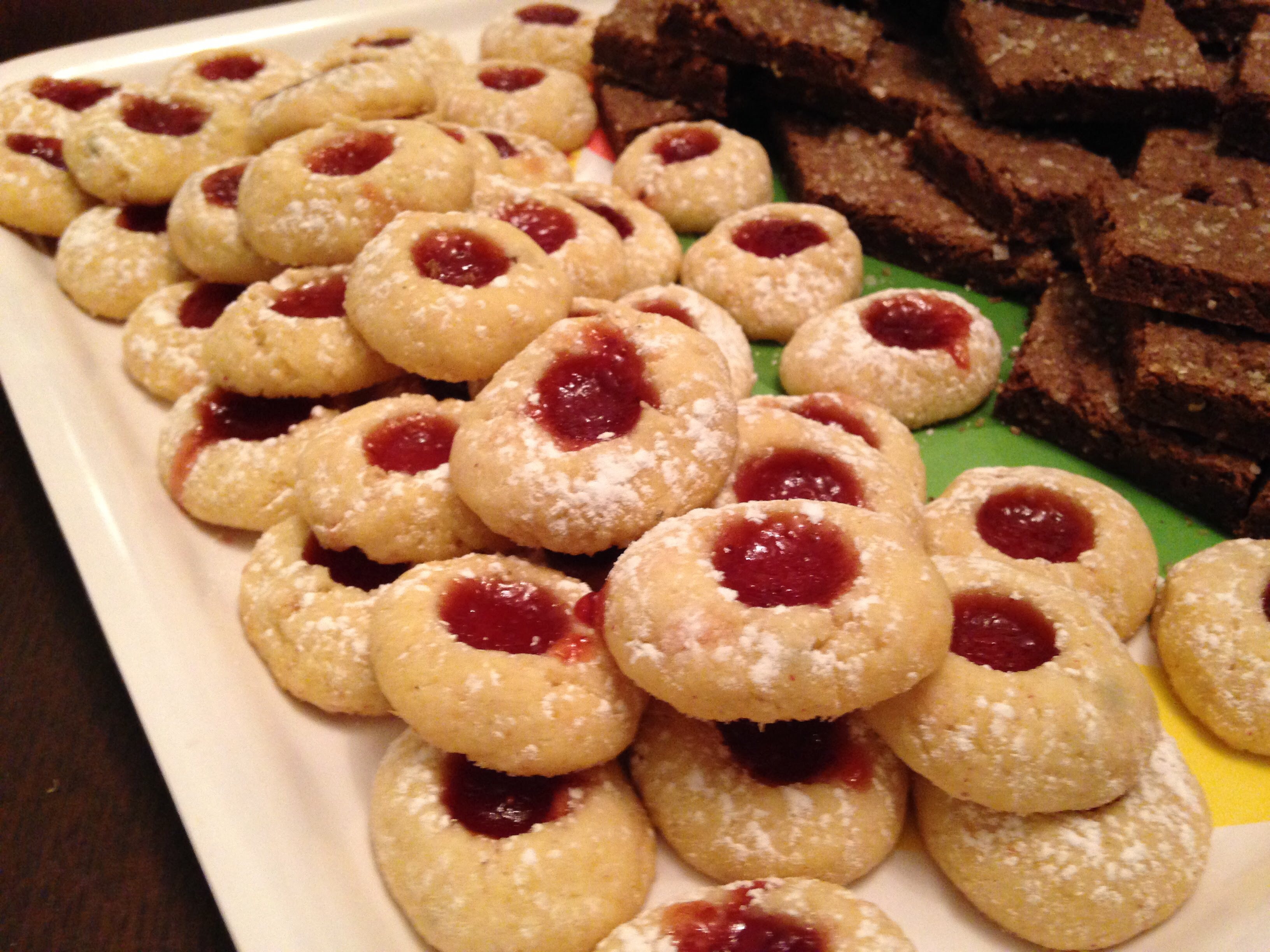 Alyssa also made Pink Peppercorn Thumbprints from the Dorie’s Cookies cookbook. Our tiny group ate this entire pile of thumbprint cookies, so they were obviously a huge hit! The spice of the peppercorn was a nice contrast to the sweetness of the jam, and they’re such a poppable size that we couldn’t stop ourselves.