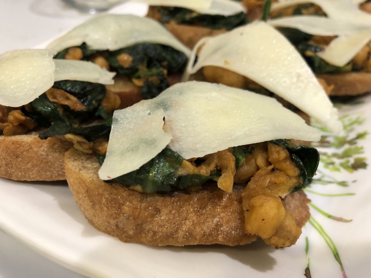 Eileen made Pimenton-Spiced Chickpeas with Spinach and Manchego on Toast. For those like me who didn’t know… pimenton is smoked paprika. The smoky flavor of the spices was great, manchego is one of my favorite cheeses, and Eileen home-made the baguette – can’t beat that!