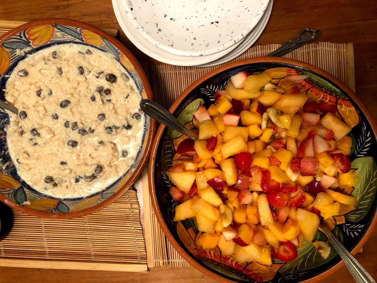 Revi made a bonus Mexican Rice Pudding, since the Guerrilla Tacos cookbook doesn’t contain any desserts, but we love dessert! She paired it with a gorgeous fruit salad – delish!