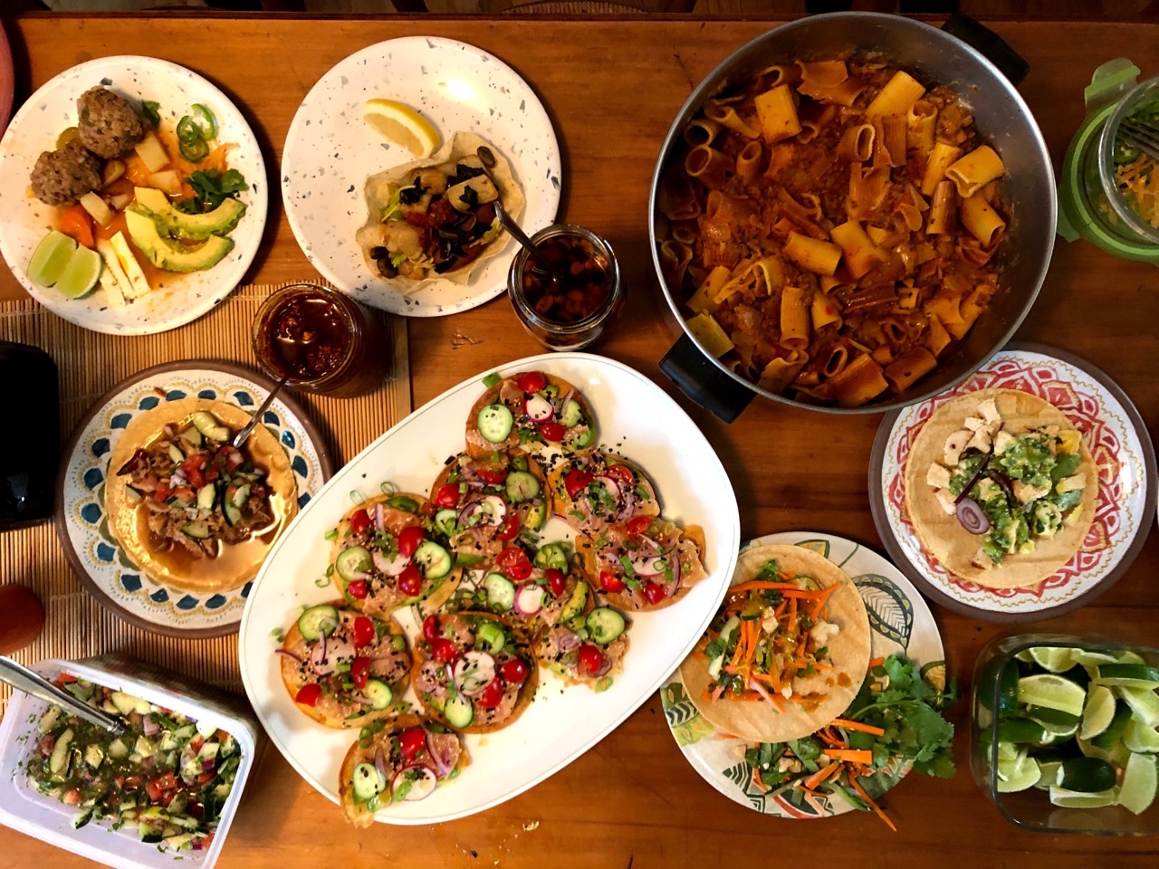 I made Taco Pasta. The recipe called for it to be served immediately, but having to transport it to the party made that impossible. I did snag a few bites when it was hot off the stove, and I have to say eating it at room temp did not do this dish justice. Other cookbook clubbers who took some of the leftovers and had the chance to try it heated up sent me messages saying they agree. Avila says “Kids love it. Stoners love it. Cooks love it.” I believe it.