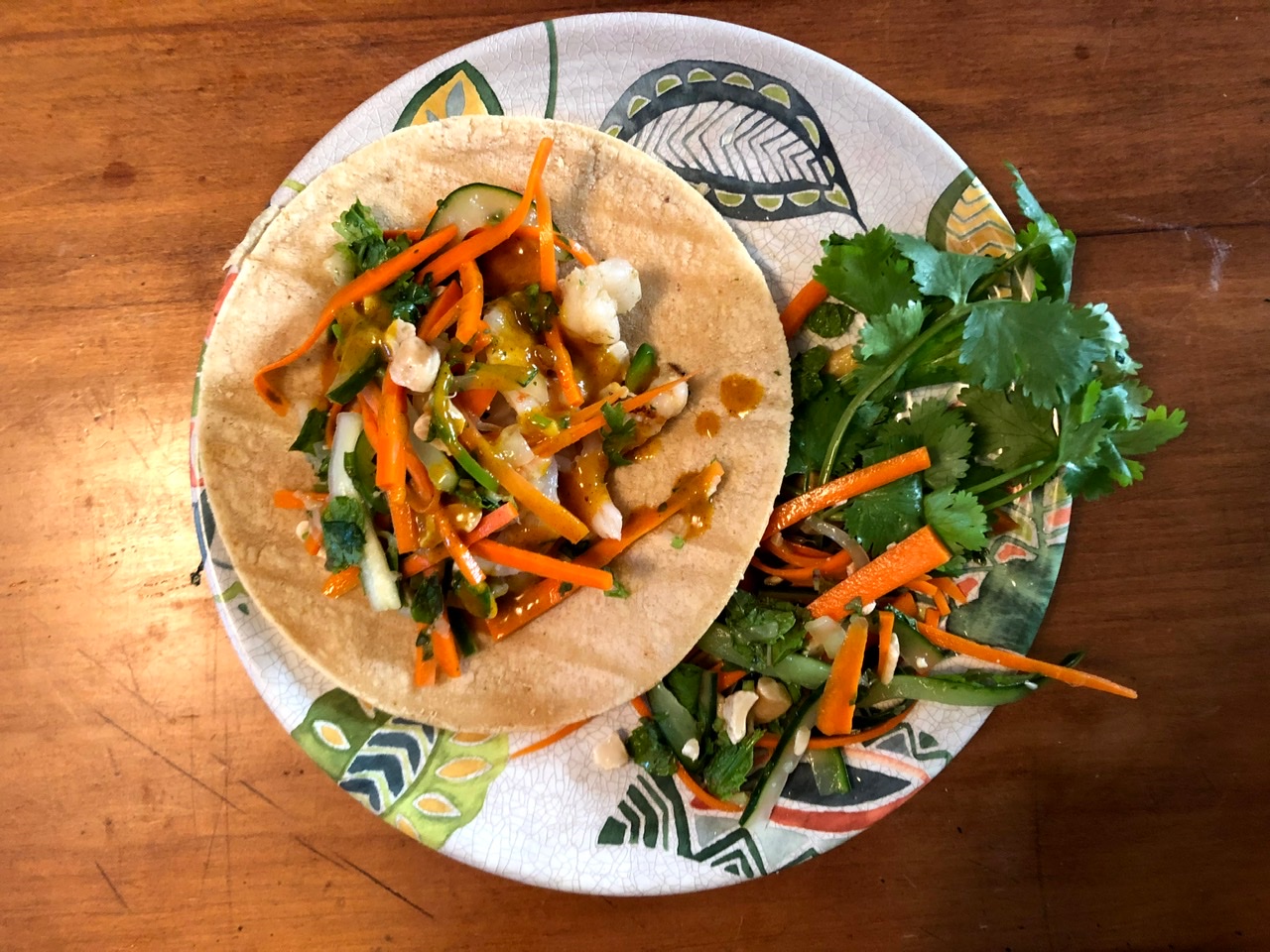 Belle made Grilled Shrimp Tacos. The shrimp was topped with Thai curry and a Thai slaw of carrots and cucumbers. The Thai-inspired flavors were great, though there was a general consensus that these tacos were a bit on the salty side.