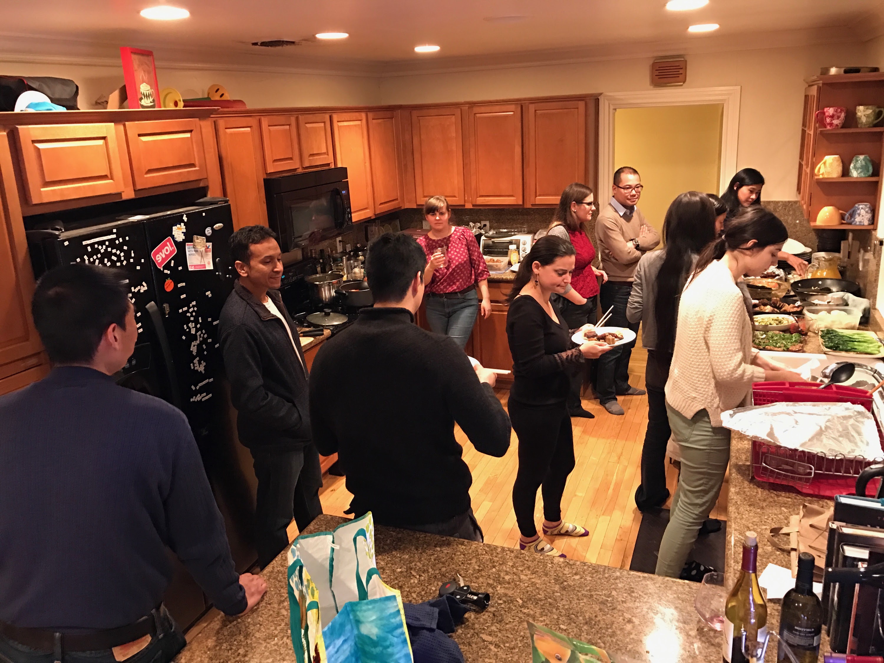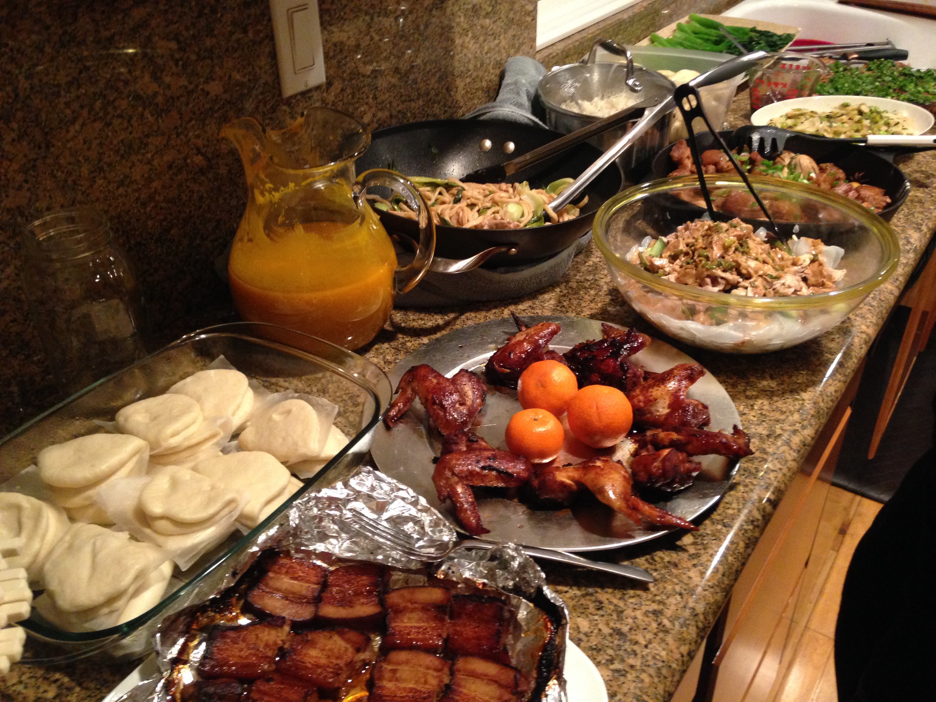 The spread of food was fantastic. We hit many of the traditional new year dishes as well as some other delicious recipes from All Under Heaven and Land of Fish and Rice. And we even had some bonus dishes… apparently people were really excited about making some yummy Chinese food to celebrate the new year! Luckily Colin had volunteered to host, and his giant kitchen was big enough to fit all of us. We proved there’s no such thing as too many cooks in the kitchen with all of this amazing food…