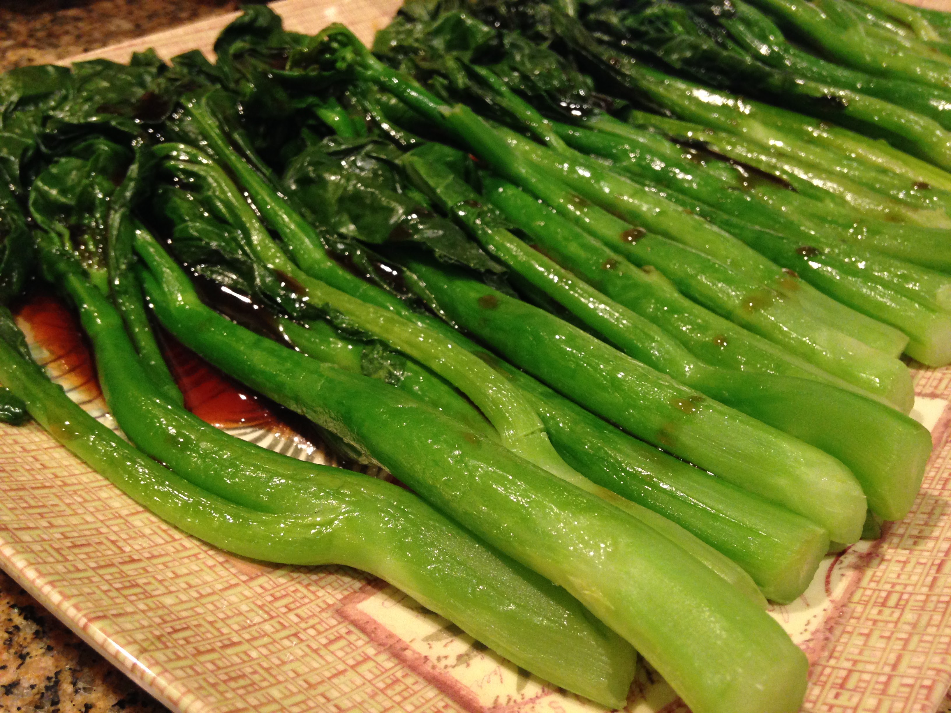 I made Gailan with Oyster Sauce. Also known as Chinese Broccoli, this is a traditional new year dish. It’s also a family favorite for me. Strangely, I’d never made it myself, so I thought it was high time. I love the bright green color and crispness that comes from only cooking them a short amount of time. It’s nice to have these greens to round out a Chinese meal.