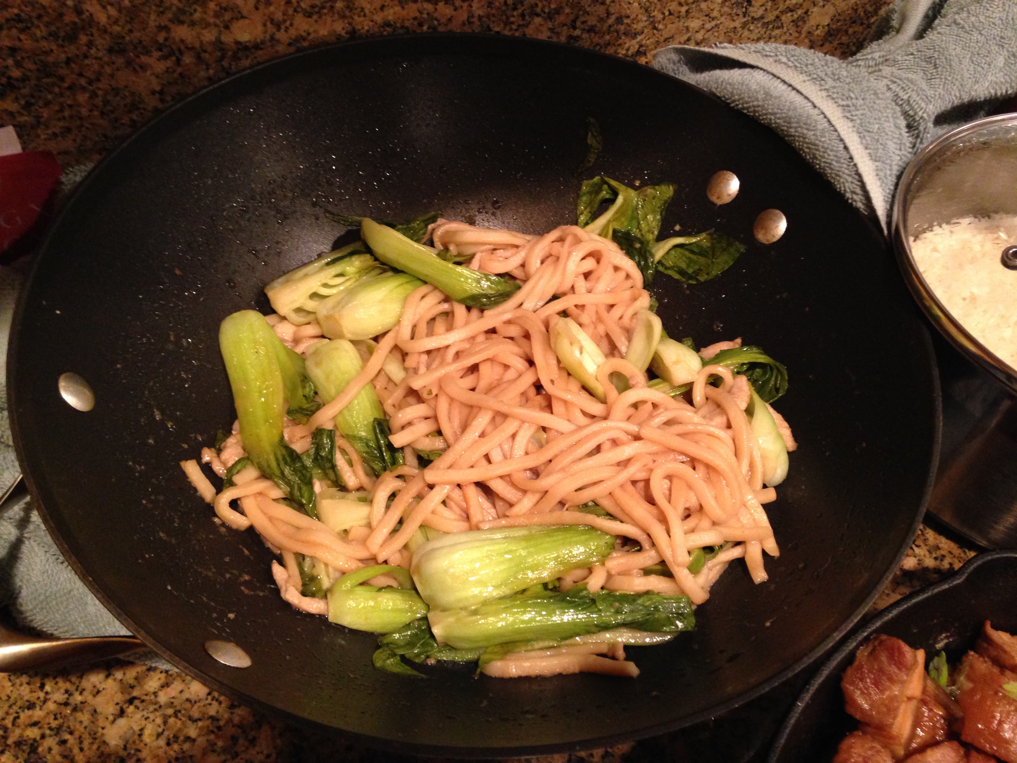Alyssa made Shanghai Stir-Fried Chunky Noodles. Noodles are a traditional new year dish that are supposed to bring long life. These were thick, springy udon noodles, with bok choy and tender chicken pieces. While tasty, this didn’t blow me away in the universe of all of the noodle dishes I’ve ever had.