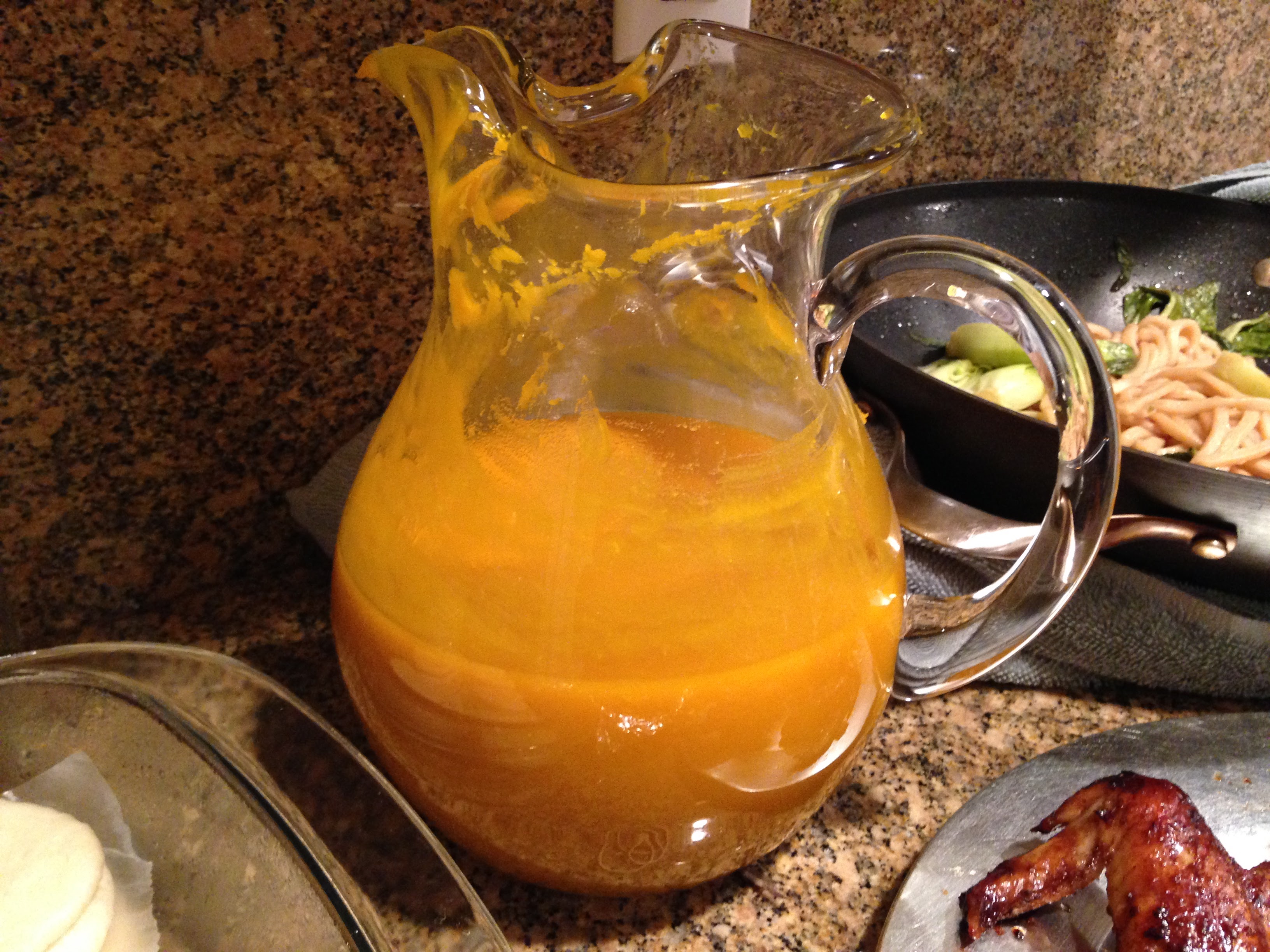 Anthony made Warm Pumpkin Juice with Honey. I had never heard of this, and it didn’t sound Chinese to me at all. I have to admit I had my reservations. Warm juice!? It actually turned out to be quite tasty. It had just a touch of sweetness and was thicker than I expected – more like a smoothie than a juice.