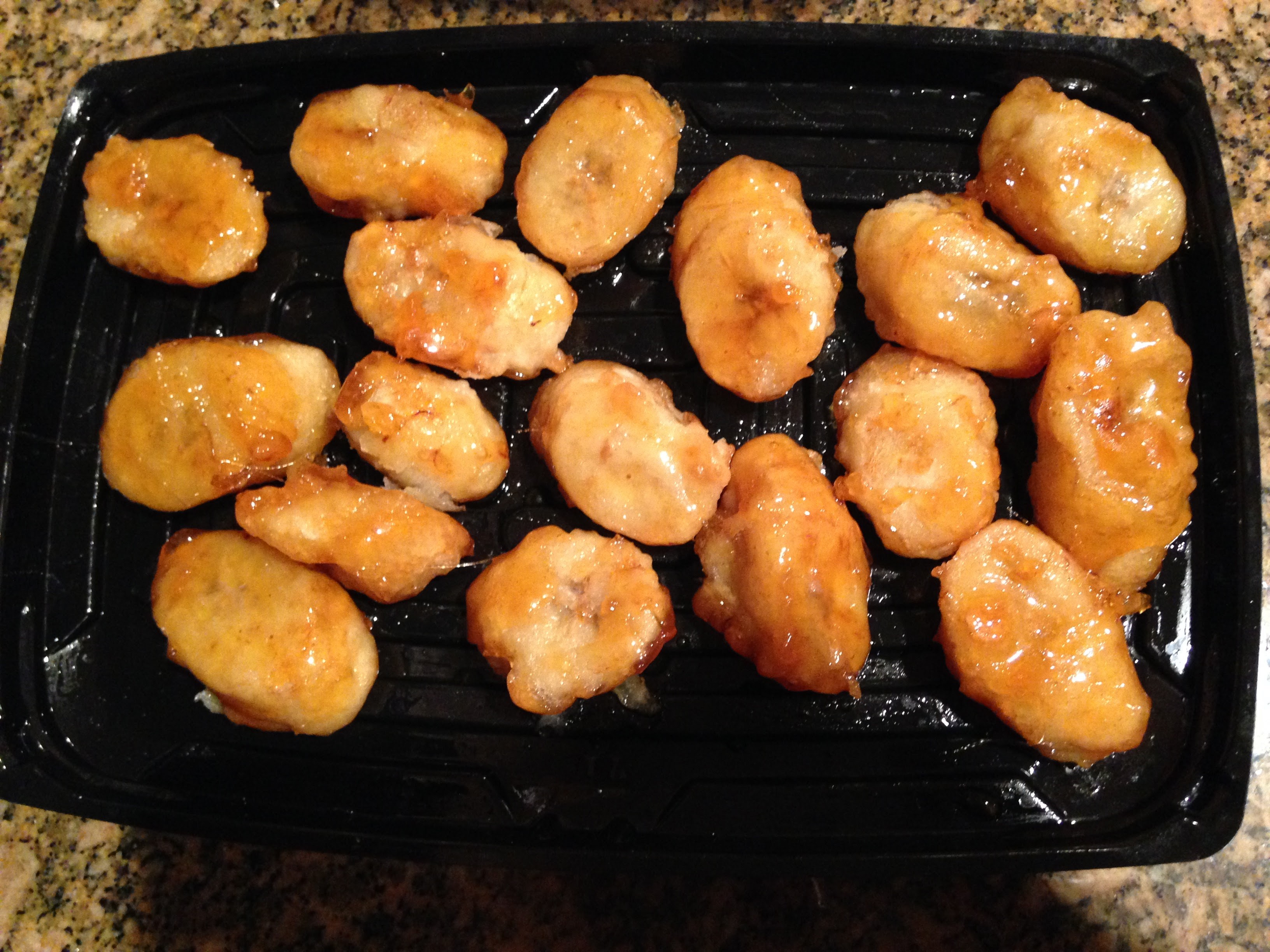 Cindy was the overachiever and made a third dish – Toffee Banana. They were reminiscent of the fried banana dessert you can often get at Chinese restaurants. Only instead of a fried dough shell, these had a sweet harder shell. I just wish the toffee hadn’t adhered so firmly to all my teeth as I chewed.