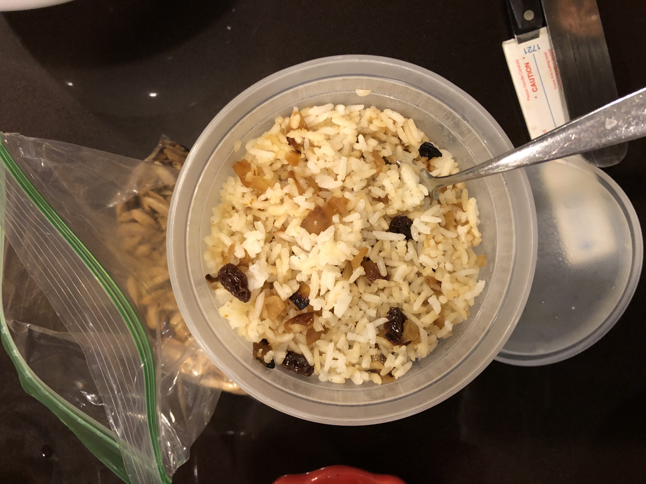 Riley made Simcha’s Rice with Almonds and Raisins from The Seasonal Jewish Kitchen. I love rice, so I’m pretty much always happy to have any rice dish. Thus I was glad to have it expeically to eat with the chicken dishes, but it wasn’t a particularly standout rice for me.