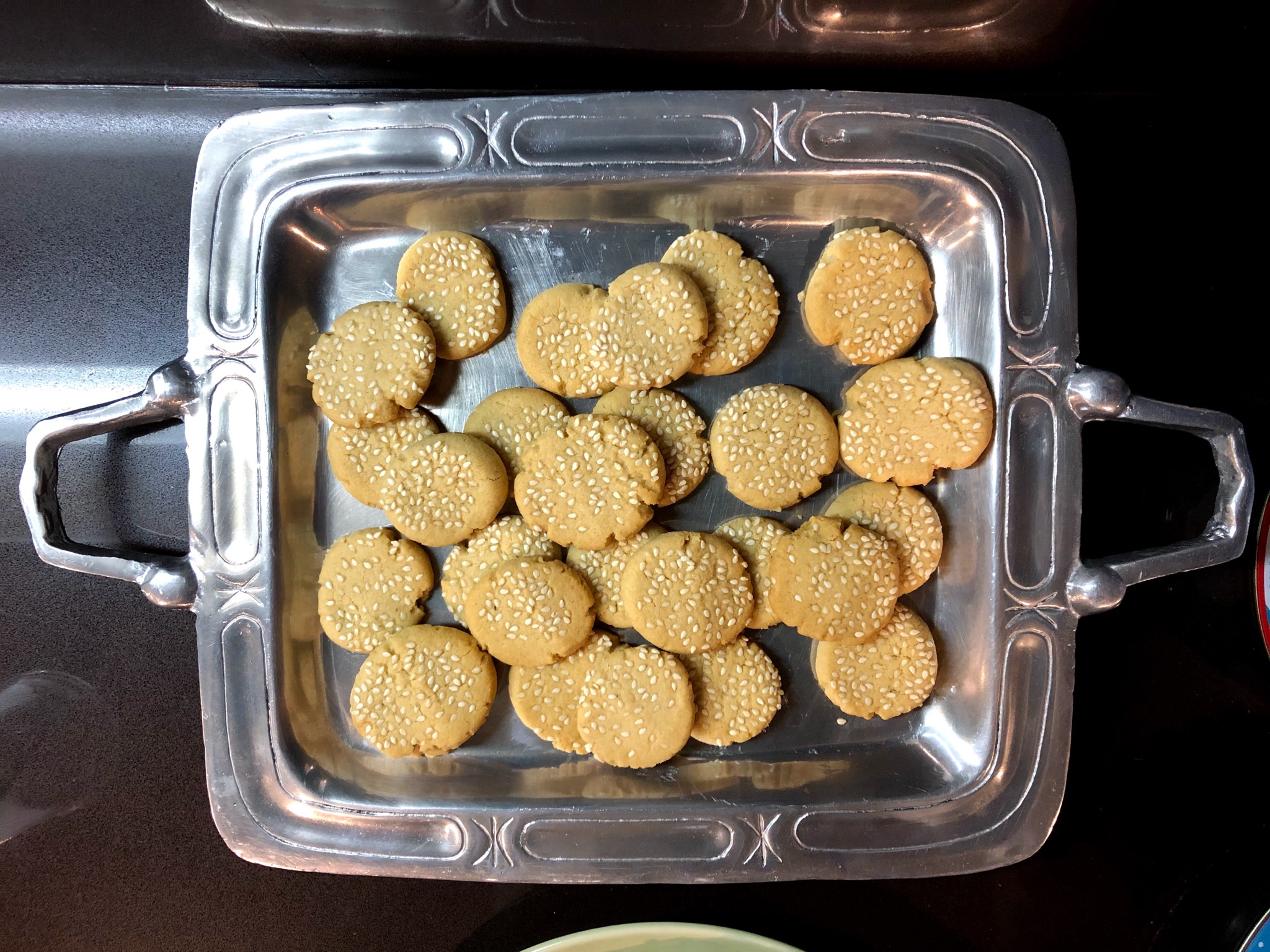 Revi made Tahini Butter Cookies from The Seasonal Jewish Kitchen. I’m not sure if it was just because I was overwhelmed by the quantity of dishes, but I took one of these cookies home and it was even better the next day – really nice sesame flavor.