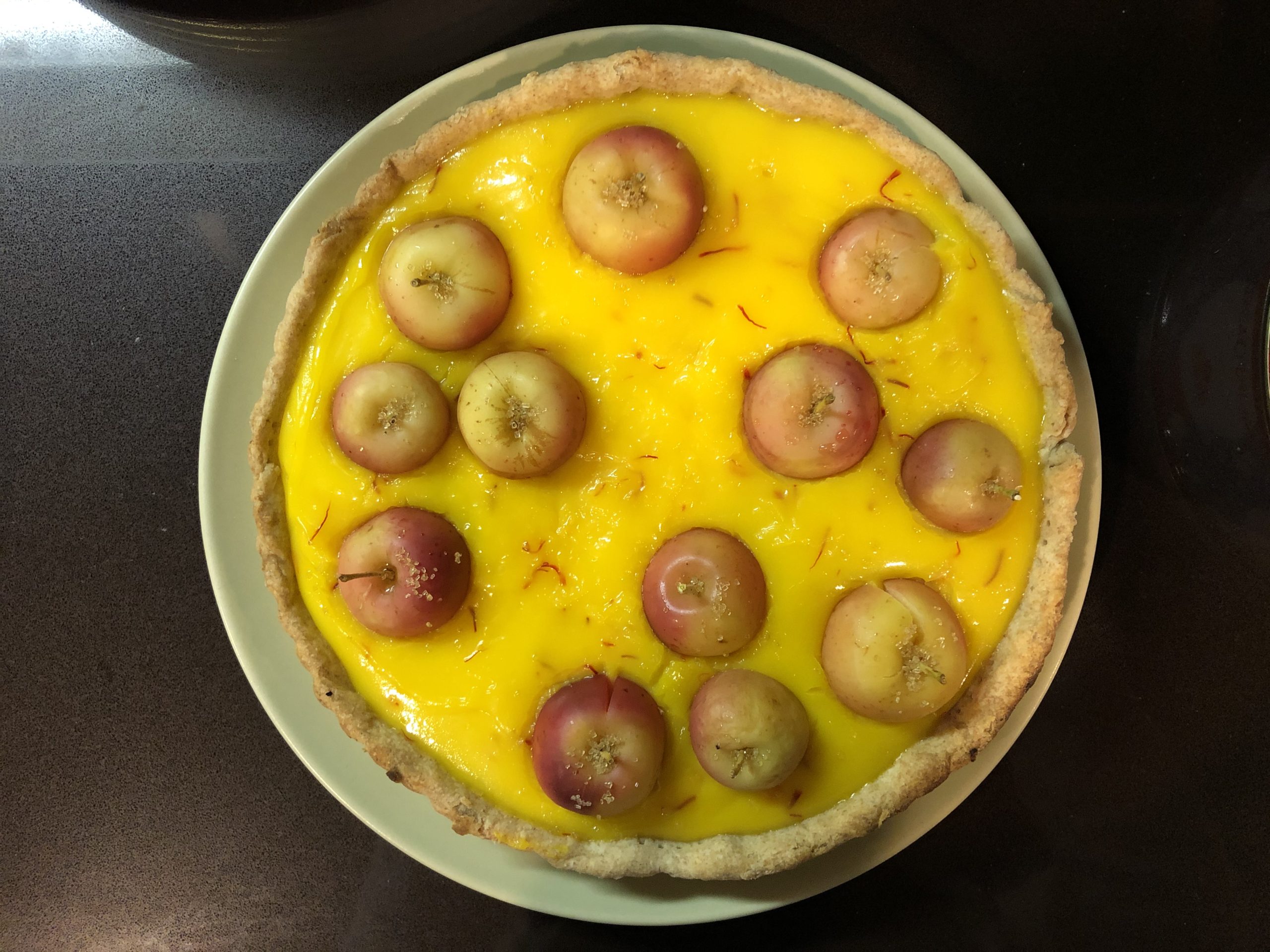 Erin also made Saffron Pastry Cream Tart with Fruit from The New Spanish Table. I enjoyed the very floral flavor of this pastry, and as always Erin’s presentation was stellar with the adorable little apples dotting the top of this dessert.