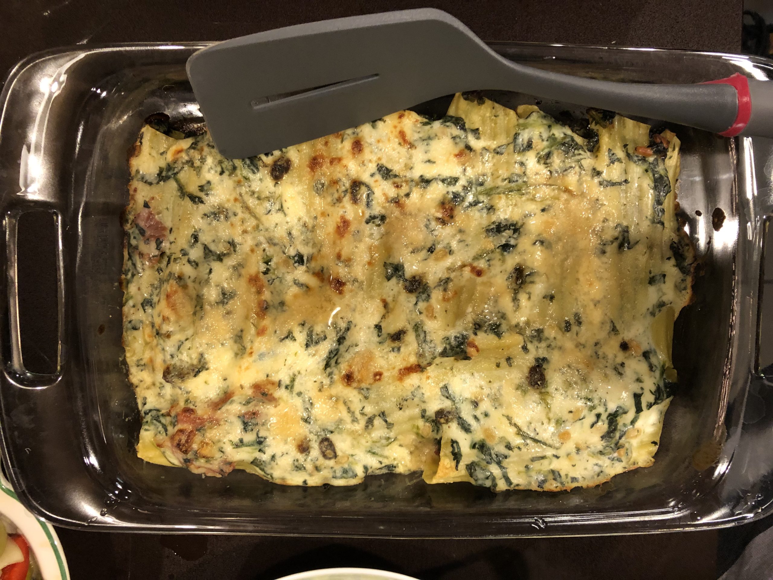 Jeff made Cannelloni with Spinach, Raisins, and Pine Nuts from The New Spanish Table. This was cheesy pasta goodness which I might have been happy to eat on its own, but amongst so many other dishes I don’t think I was able to fully appreciate it.