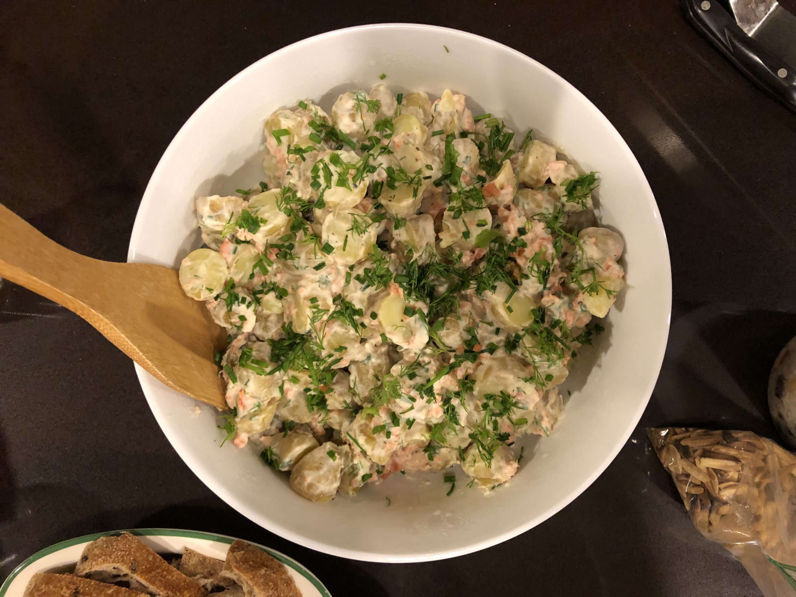 Jeanette made Smoked Salmon Potato Salad from The Food Lab. I am not a big fan of potatoes, but I adore smoked salmon, so I was pretty excited to try this one. I wasn’t blown away – it pretty much tasted like potatoes mixed with smoked salmon, and I wished it had more herb flavor.
