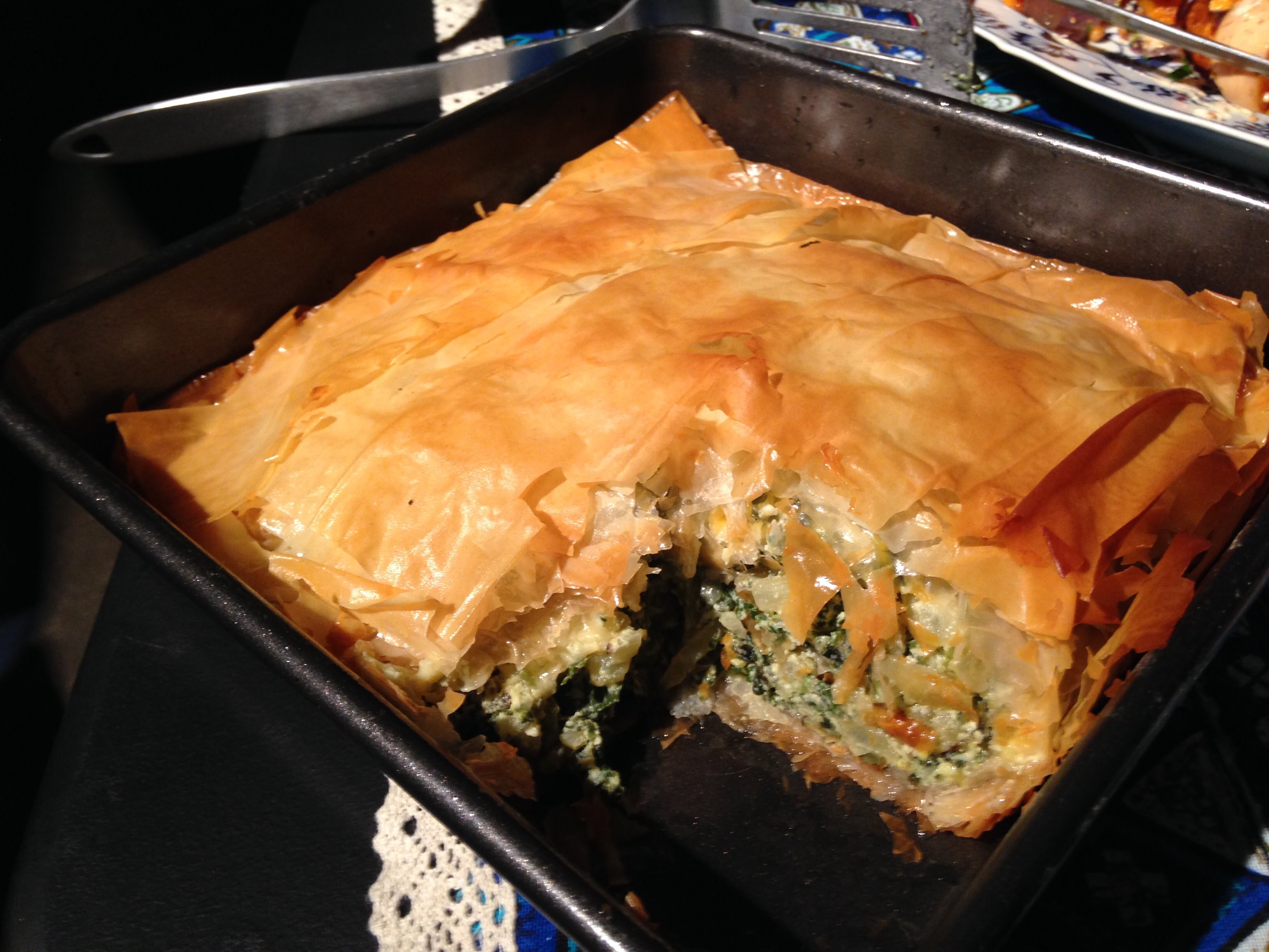 Ben made Herb Pie. It’s amazing how good a ton of herbs and some cheese are in a pie. I also love the crisp layers of filo pastry for the crust.