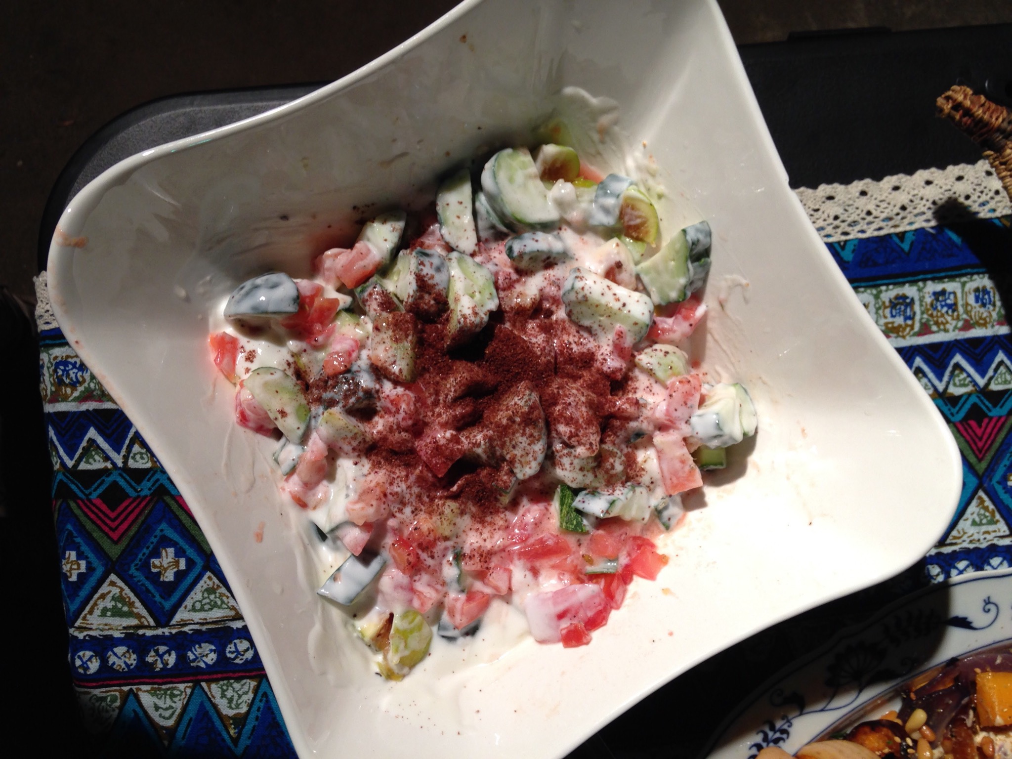 Shayna made Yogurt with Cucumber, which she served with pita bread. It was a basic yogurt dip, nothing to make it stand out from others I’ve had, but solid.