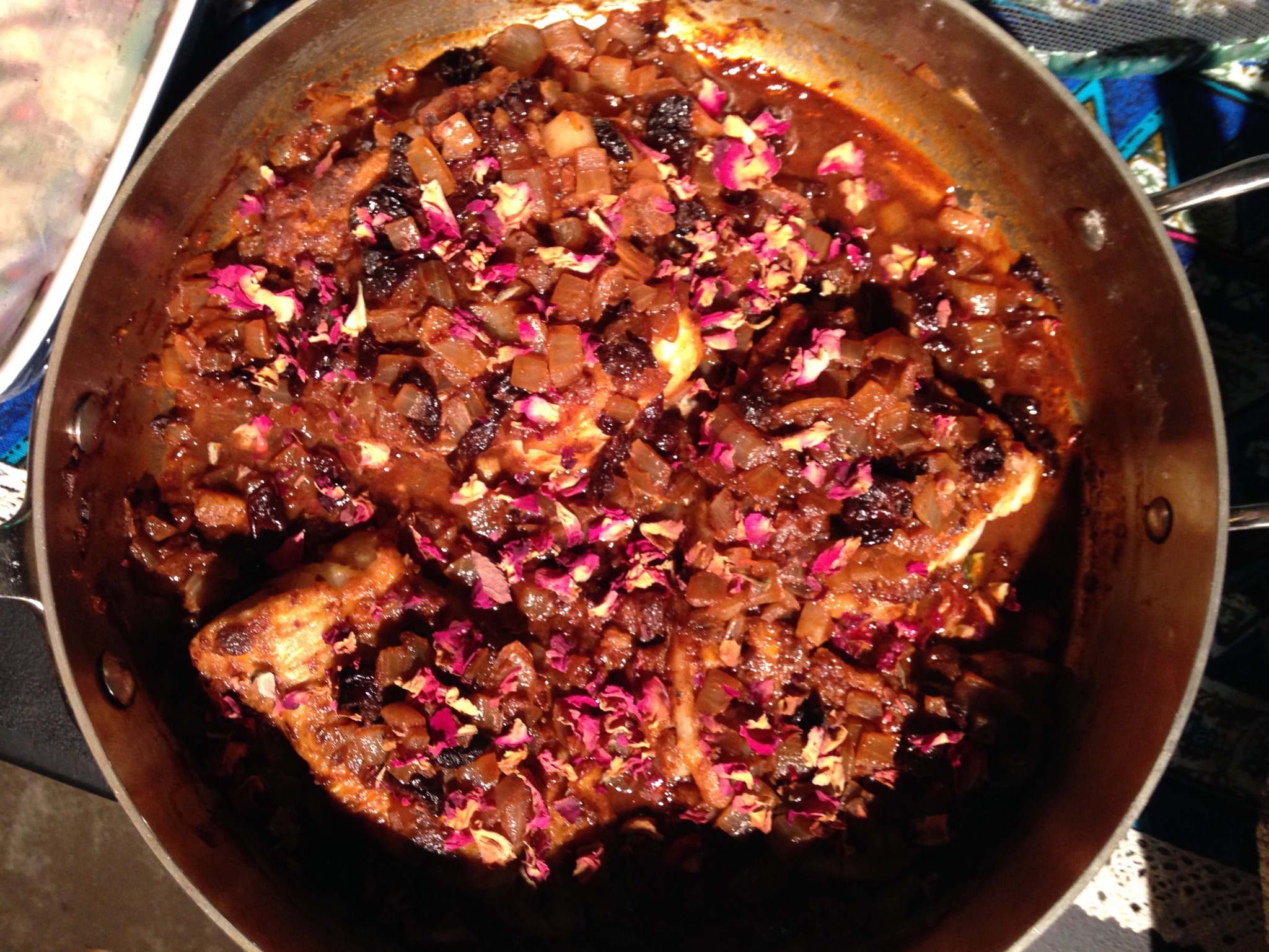Erin also made Panfried Sea Bass with Harissa & Rose. She substituted a less expensive fish for the sea bass, but it was still quite good, a little spicy sweet.