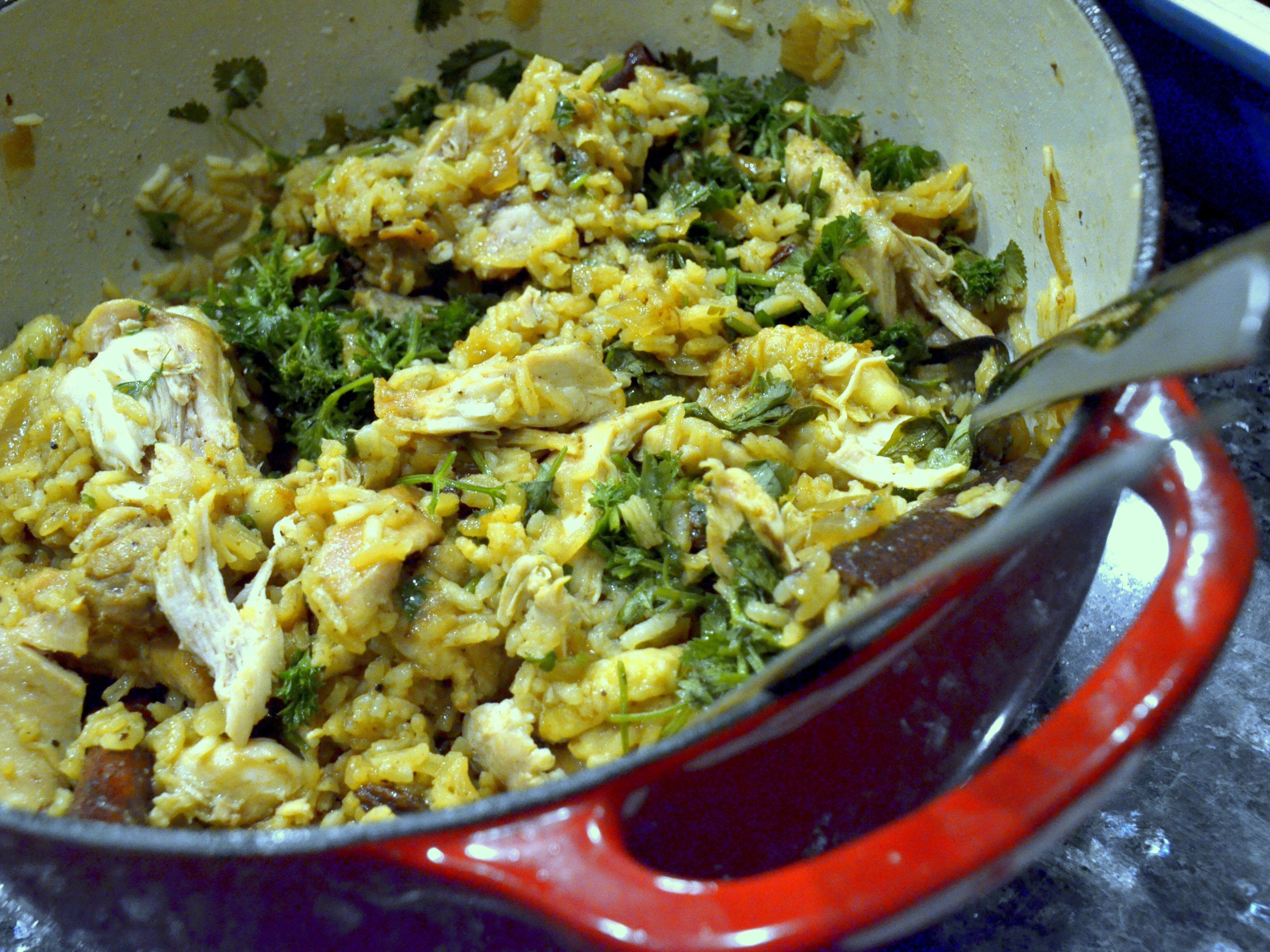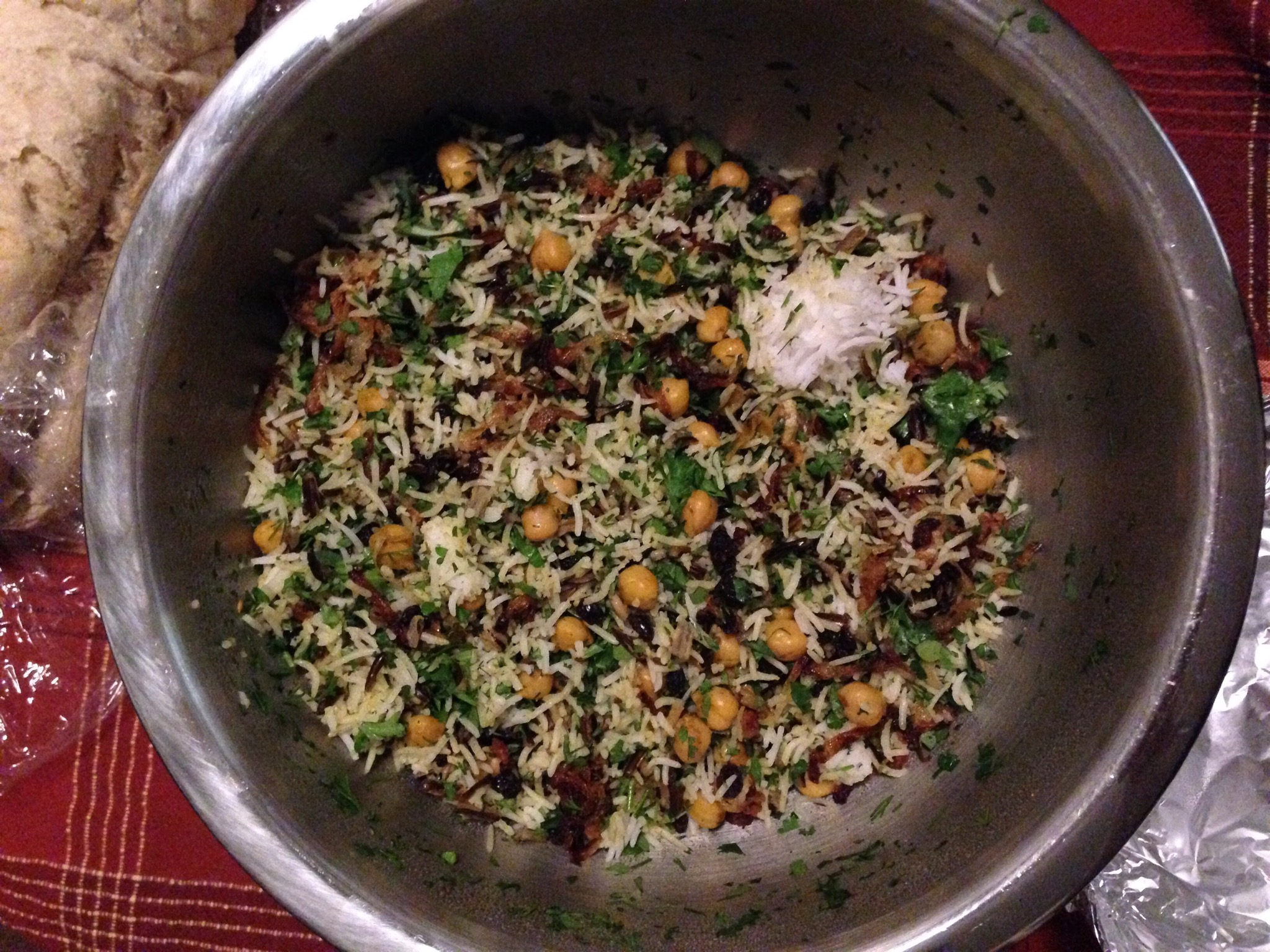 John made Basmati & Wild Rice with Chickpeas, Currants & Herbs. I really liked the chew of the wild rice, and the flavor combo of the currants, herbs, and fried onions. The chickpeas gave it enough substance that I could see myself just eating a big bowl of this for lunch.
