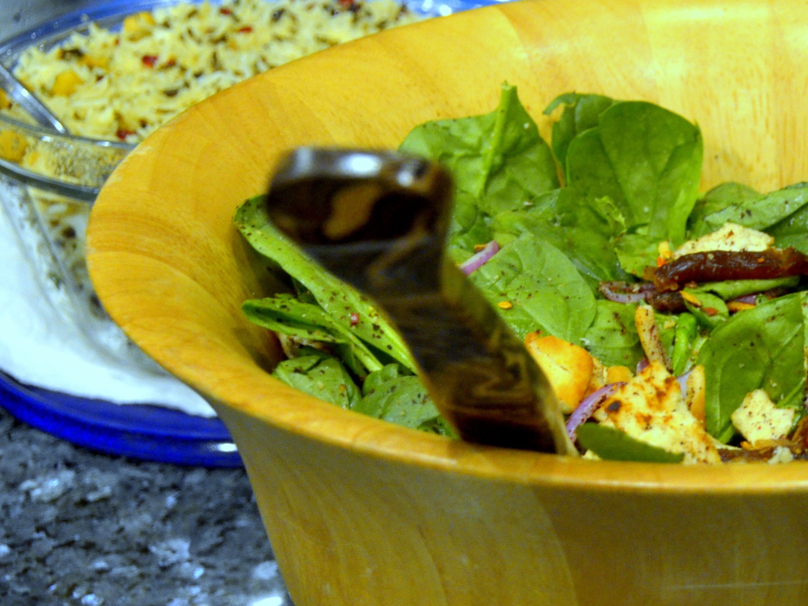 Laura & Ron made Baby Spinach Salad with Dates & Almonds. The pita chip croutons were so delicious, everyone wanted more. The dates added a nice sweetness to the salad, and it was nice to have this light and refreshing dish.