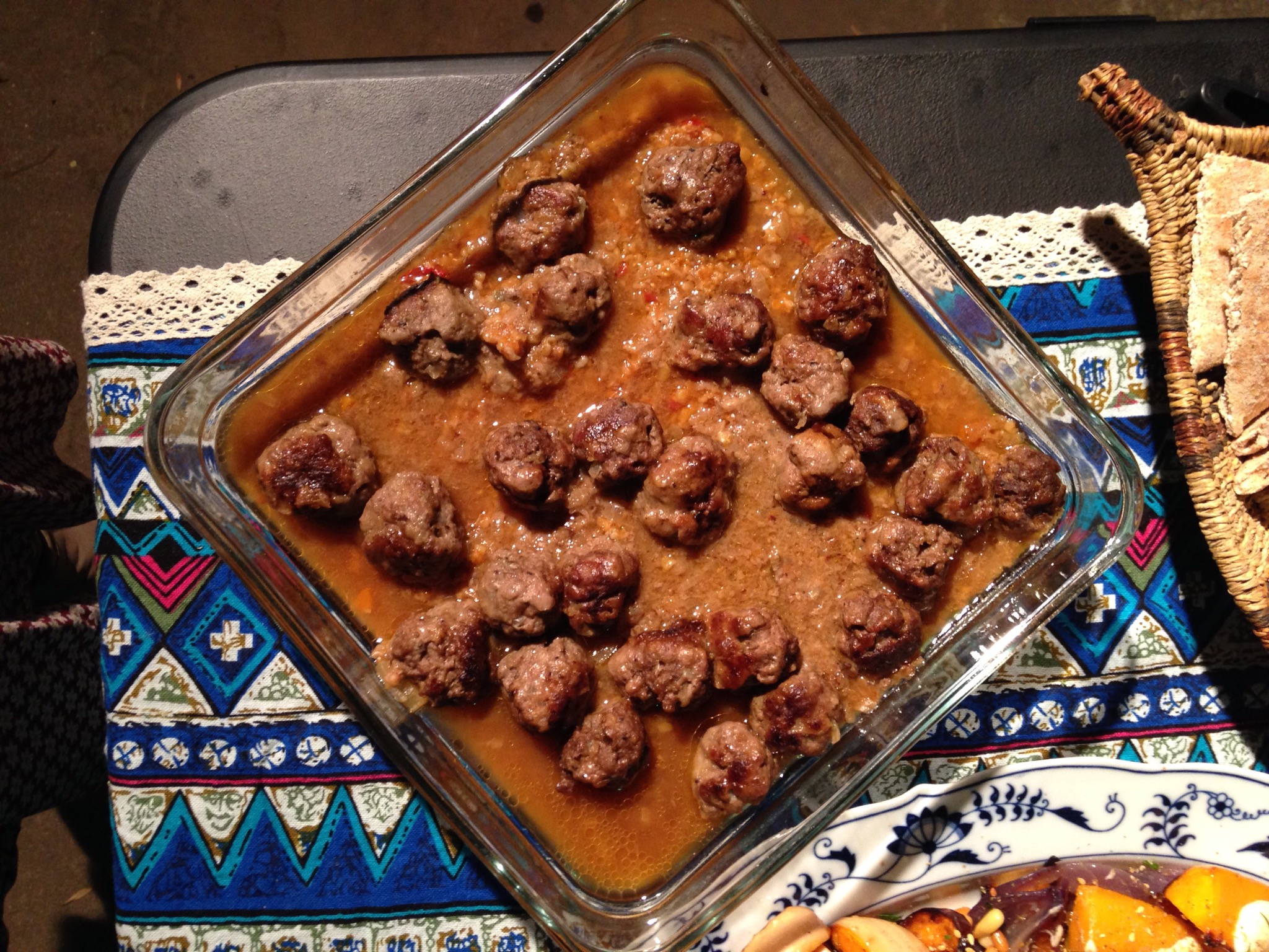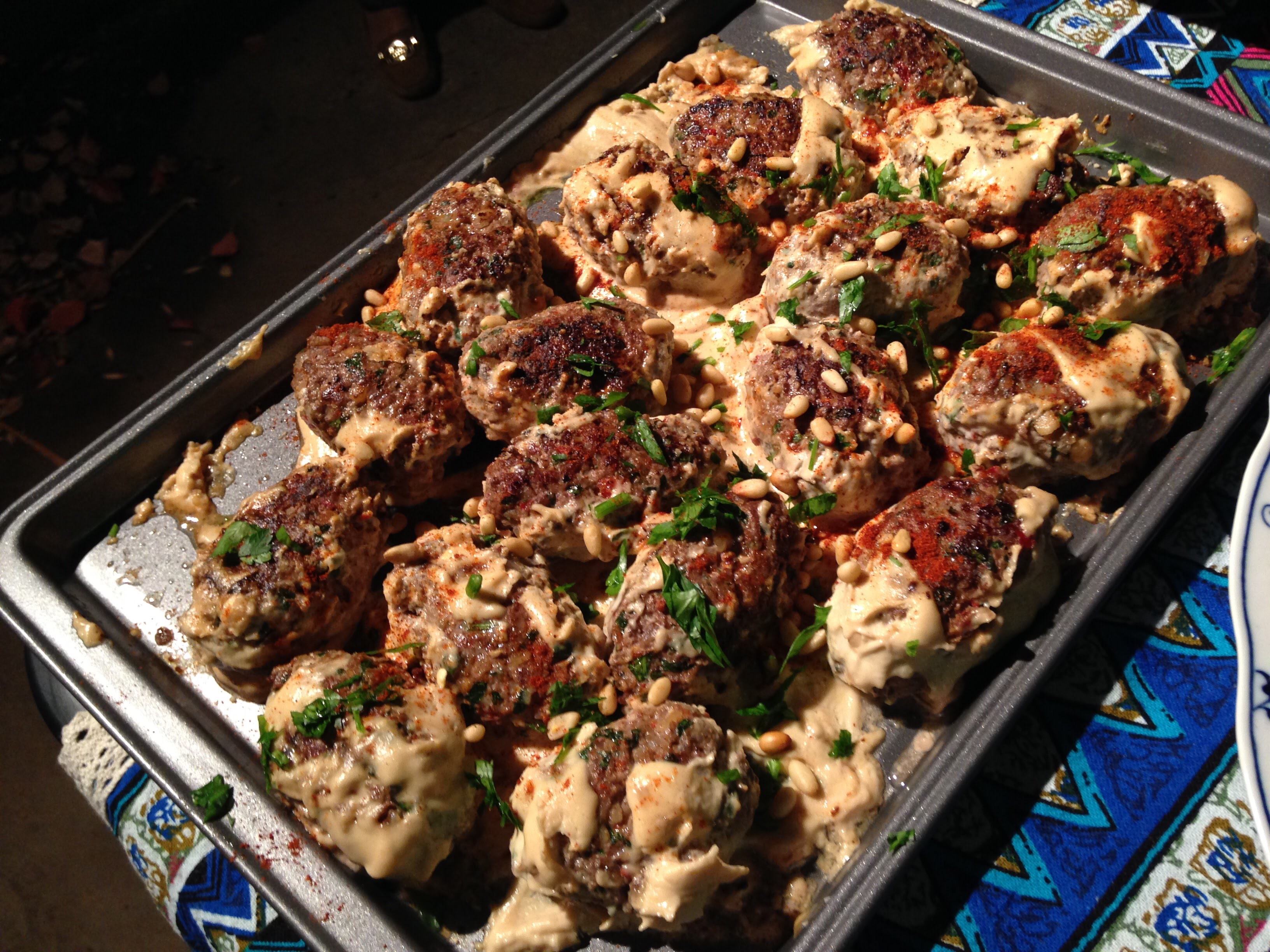 Anthony made Kofta B’siniyah. He used beef instead of veal, but the meat was still super flavorful, and the tahini sauce added a nice nutty flavor and creaminess. Yummy.