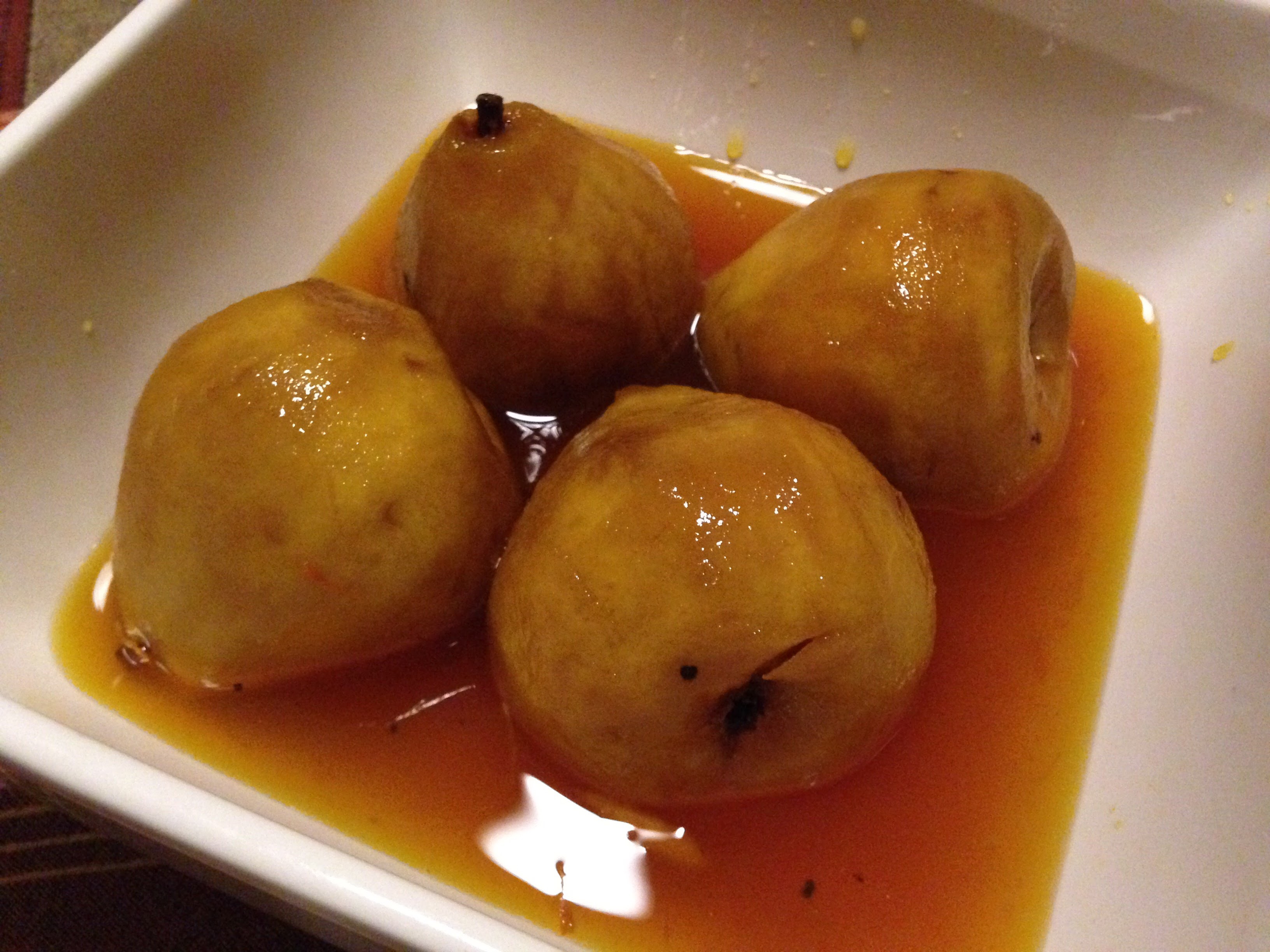 Sheana made Poached Pears in White Wine & Cardamom. This was my favorite dish of the lot. Topped with a bit of creme fraiche, the richly aromatic pears had everybody raving about them.