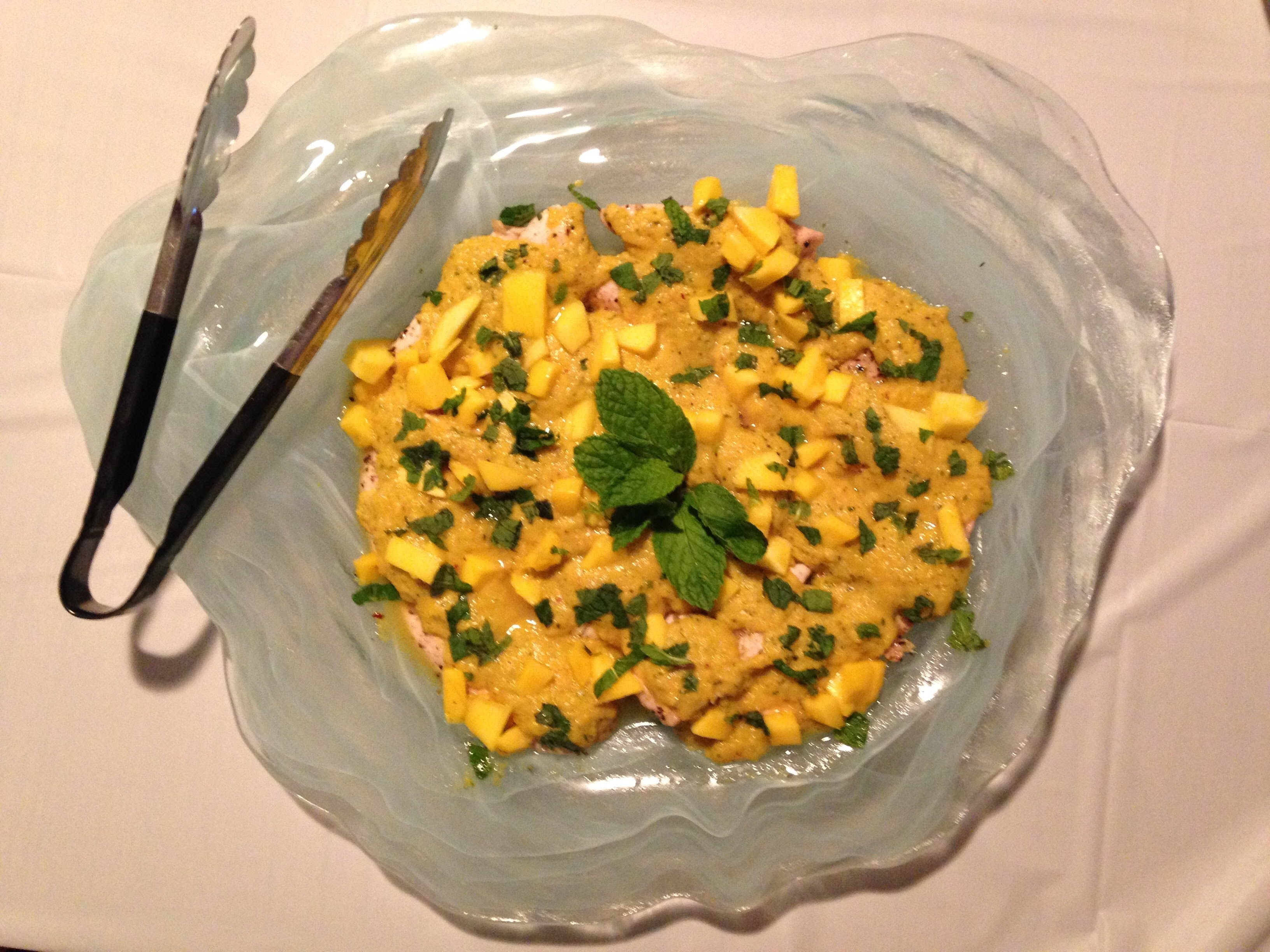 Heather made Mango Mustard Sauce over Chicken. A little sweet and a little spicy – I wished I had rice to soak up more of this sauce. Apparently this one was also quite bland when Heather followed the recipe, so she doubled the spices and it was quite nice.