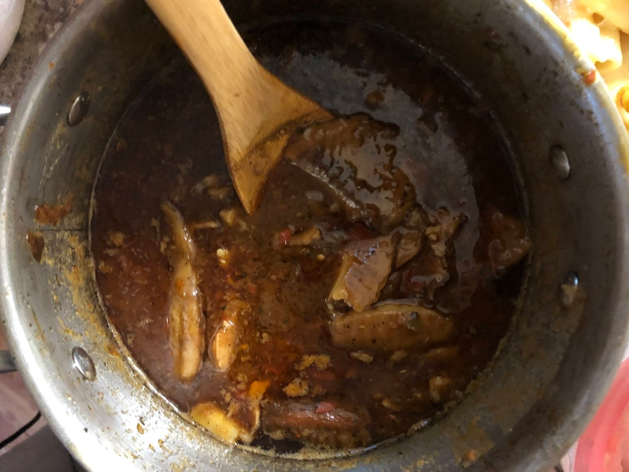 Roger made Tilapia Étouffée. The recipe was for Catfish Étouffée, but he wasn’t impressed by the look of the catfish at the market, so he went with the tilapia and I think it worked great. He made rice to serve the étouffée over, which I was glad to have to soak up all the wonderful flavors of the gravy.