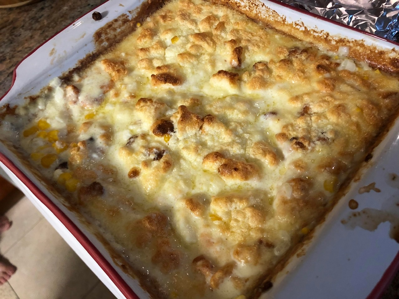 Revi made Corn Pudding. She had a hard time getting it to solidify properly, and even after cooking it much longer than the recipe called for it was still a bit runny in the middle. Still, the flavor was really nice and I enjoyed a second helping.
