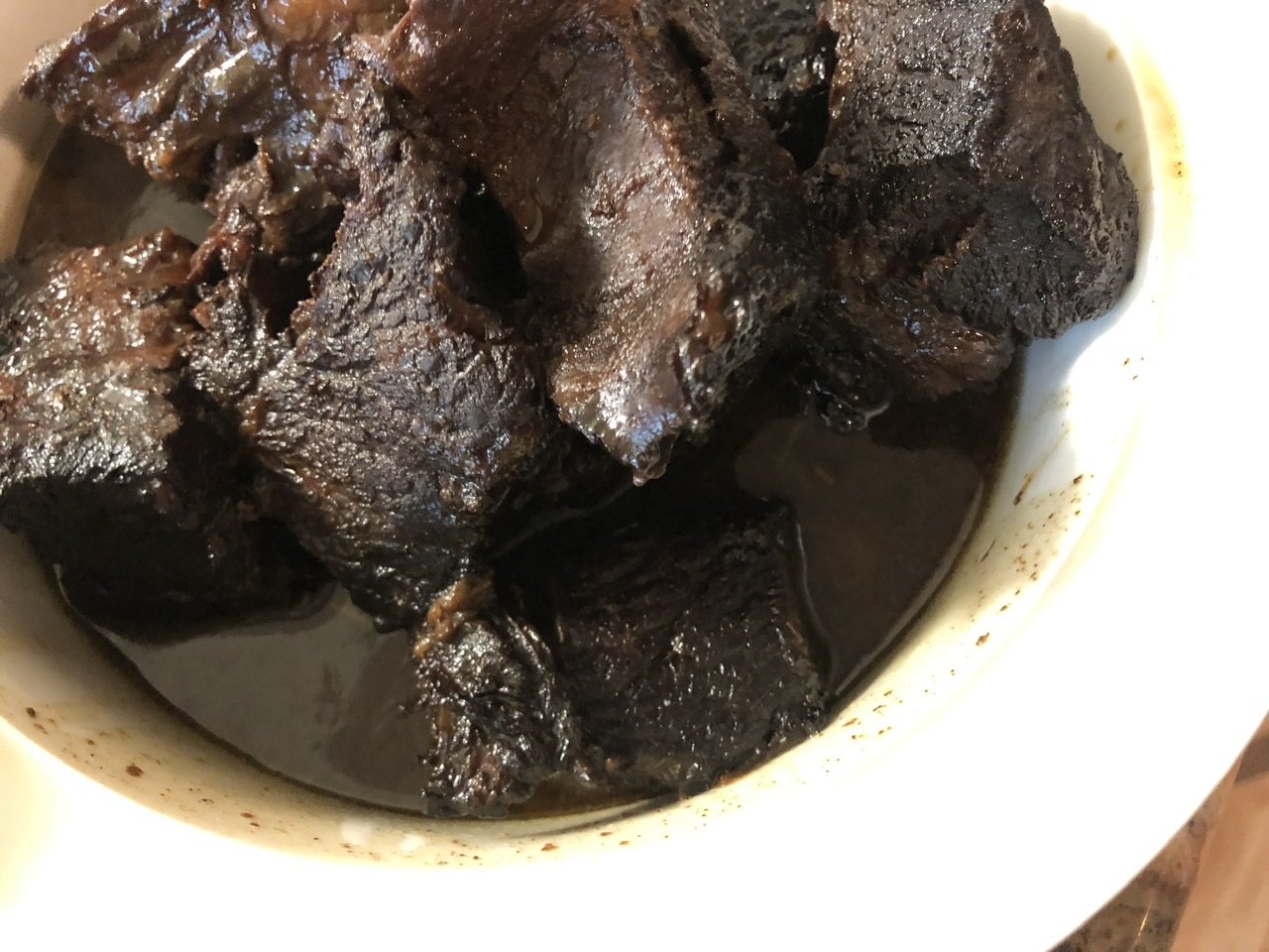 Brad made Coffee-Scented Short Ribs Braised in Red Wine. Just hearing the name of this dish had me salivating, and it didn’t disappoint. He used less molasses than the recipe called for (1 1/2 cups does sound like an awful lot!), but it came out super tender and full of smoky sweet flavor. He also made mashed potatoes to soak up the yummy sauce.
