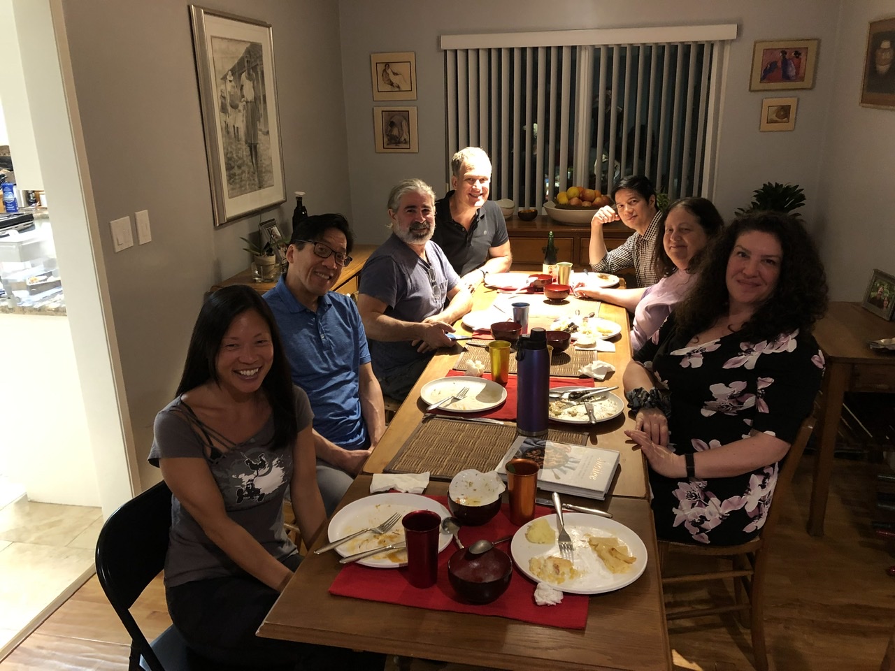 Brad was a wonderful host, providing us popcorn to snack on and Sorrel (hibiscus) Tea to sip on as we waited for everyone to arrive. The delicious tea was a recipe from the cookbook, but I was having such a pleasant time chatting with everyone about their summers that I completely forgot to take a picture of it.