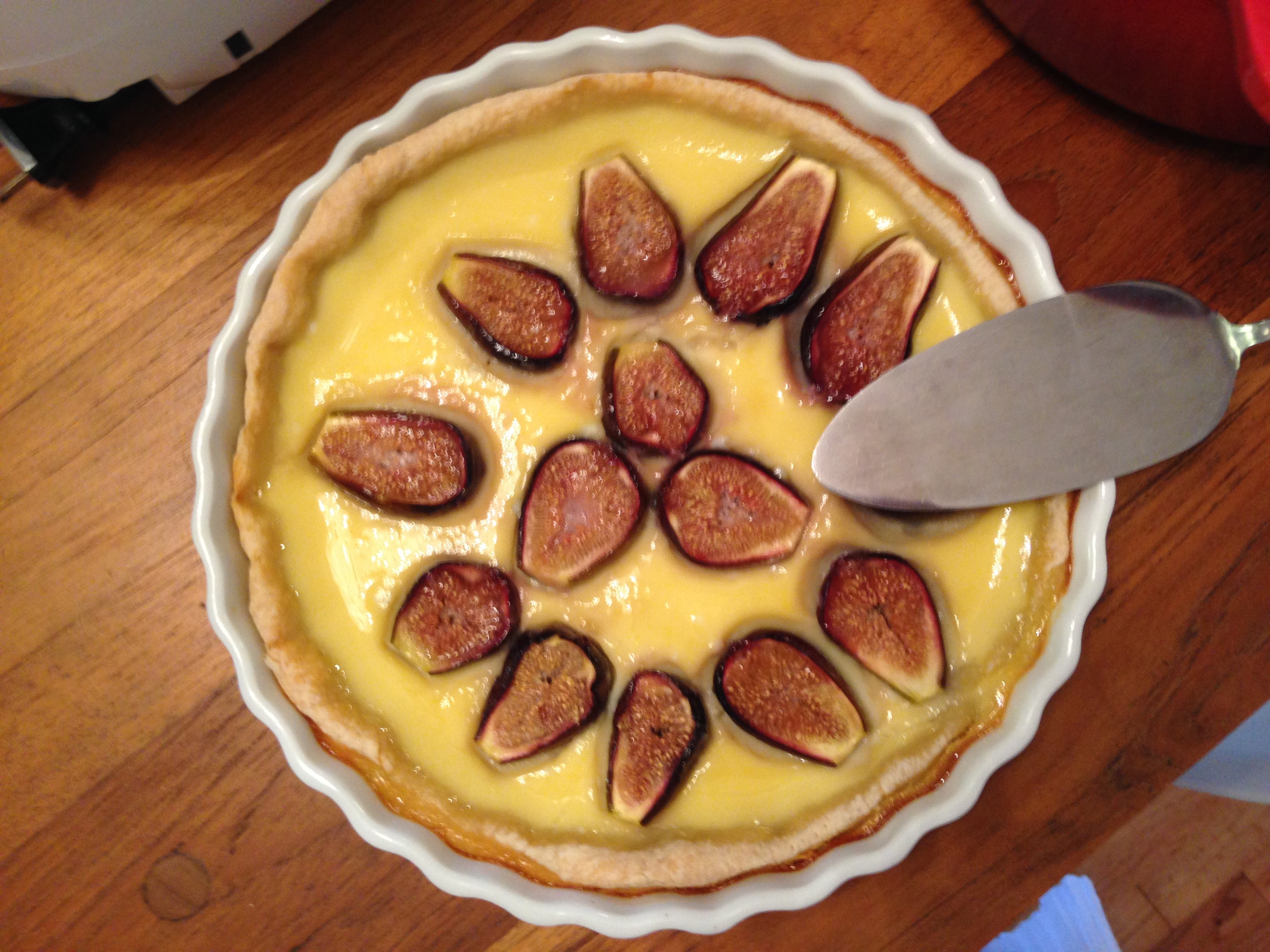 Alana: Alyssa’s third dish was the Egg Custard Tarts. This was supposed to be part of her dim sum trio, but her mini tarts didn’t turn out right. So instead she brought one large tart. And she added figs because they’re in season and she had some beautiful ripe ones. While perhaps not traditional as a whole, the figs went well with the custard (which was pretty close to what I’m used to) and made for a tasty treat.