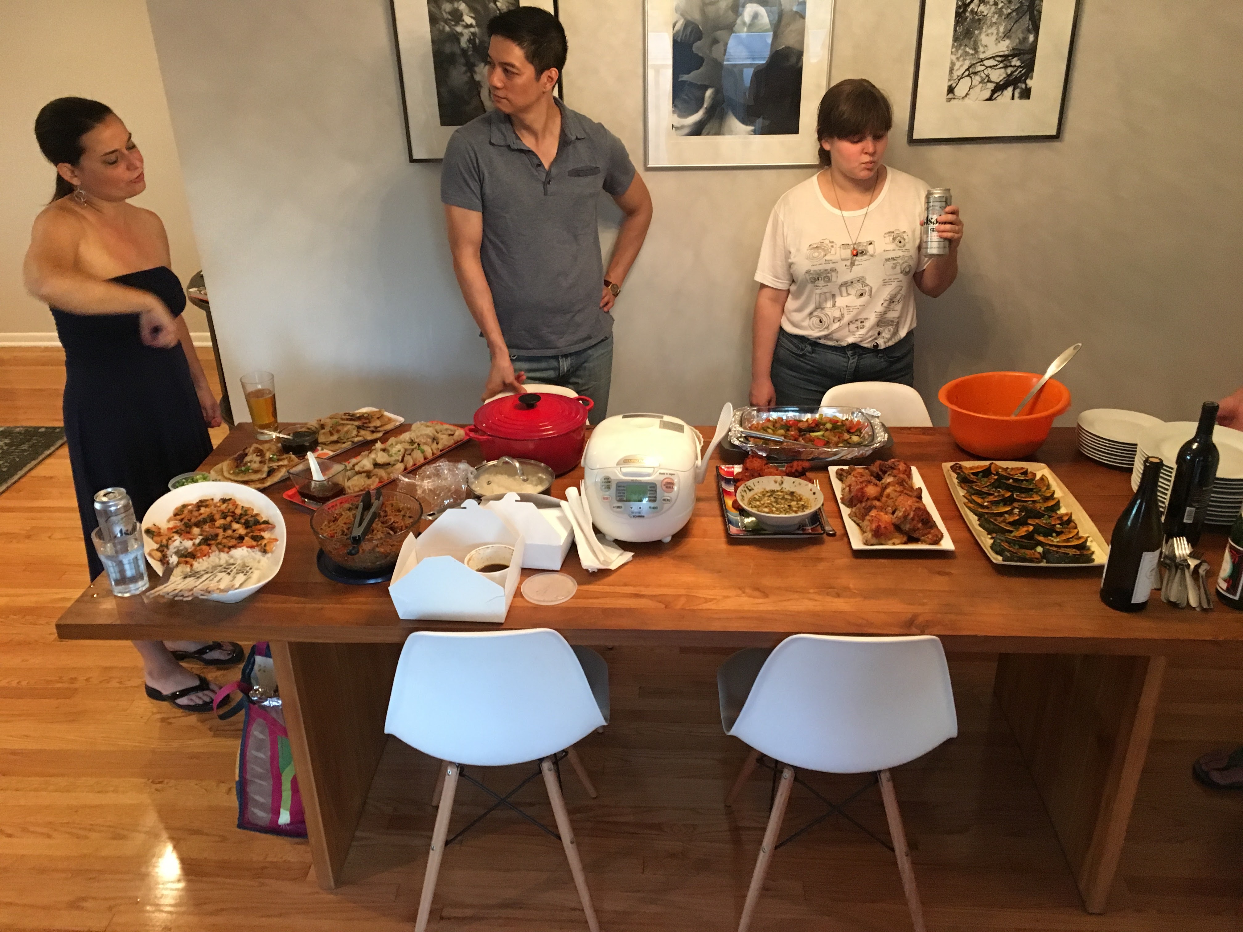This month’s cookbook was Lucky Peach Presents 101 Easy Asian Recipes, by Peter Meehan and the editors of Lucky Peach (the food magazine created by David Chang, founder of the Momofuku restaurant empire). While we wanted to expand our club’s repertoire to different kinds of foods, we were also sensitive to some people’s unfamiliarity with Asian ingredients and where to get them. As Sheana put it: “My inability to cook Asian food is precisely linked to my lack of Asian-cooking staples. What on earth is Mirin and why should I keep that next to the 8 kinds of vinegar and cooking wine that already take up my densely stocked shelf?”