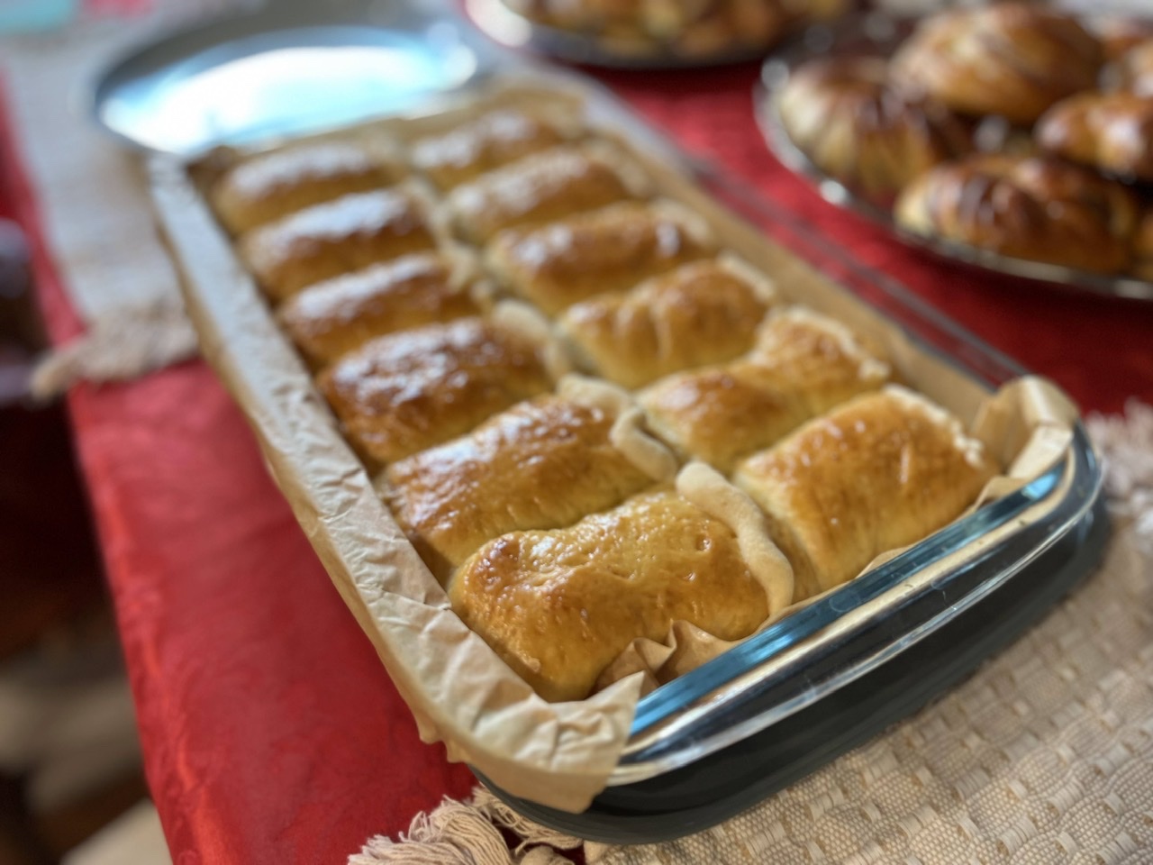 Zakia made Cocktail Buns (Gai Mei Bao). Can you believe this was her first time making bread and she kneaded it entirely by hand!? These look basic, but the coconut filling and line of topping made simply of butter, flour, and powdered sugar were enough to have me going back for another.