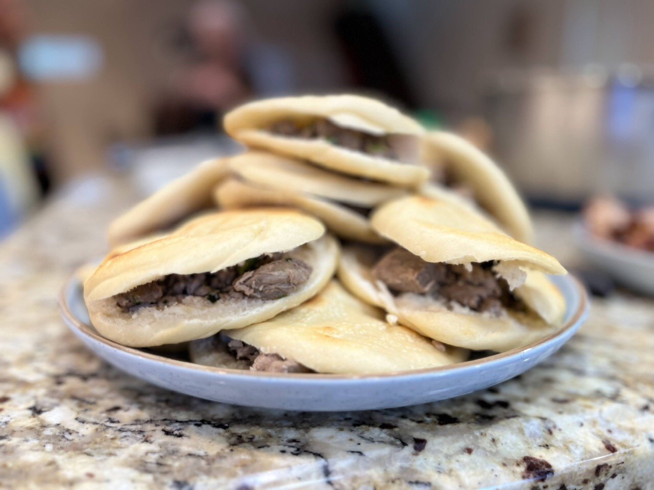 Eileen made the Mo buns for the Xi’an-Style Braised Lamb Ro Jia Mao that Naran made. The Mo is sort of like and English muffin. I expected the lamb to be more tender and have a more robust flavor. It was good once I doctored it up with the sauce that Tammy brought to go with the potstickers.