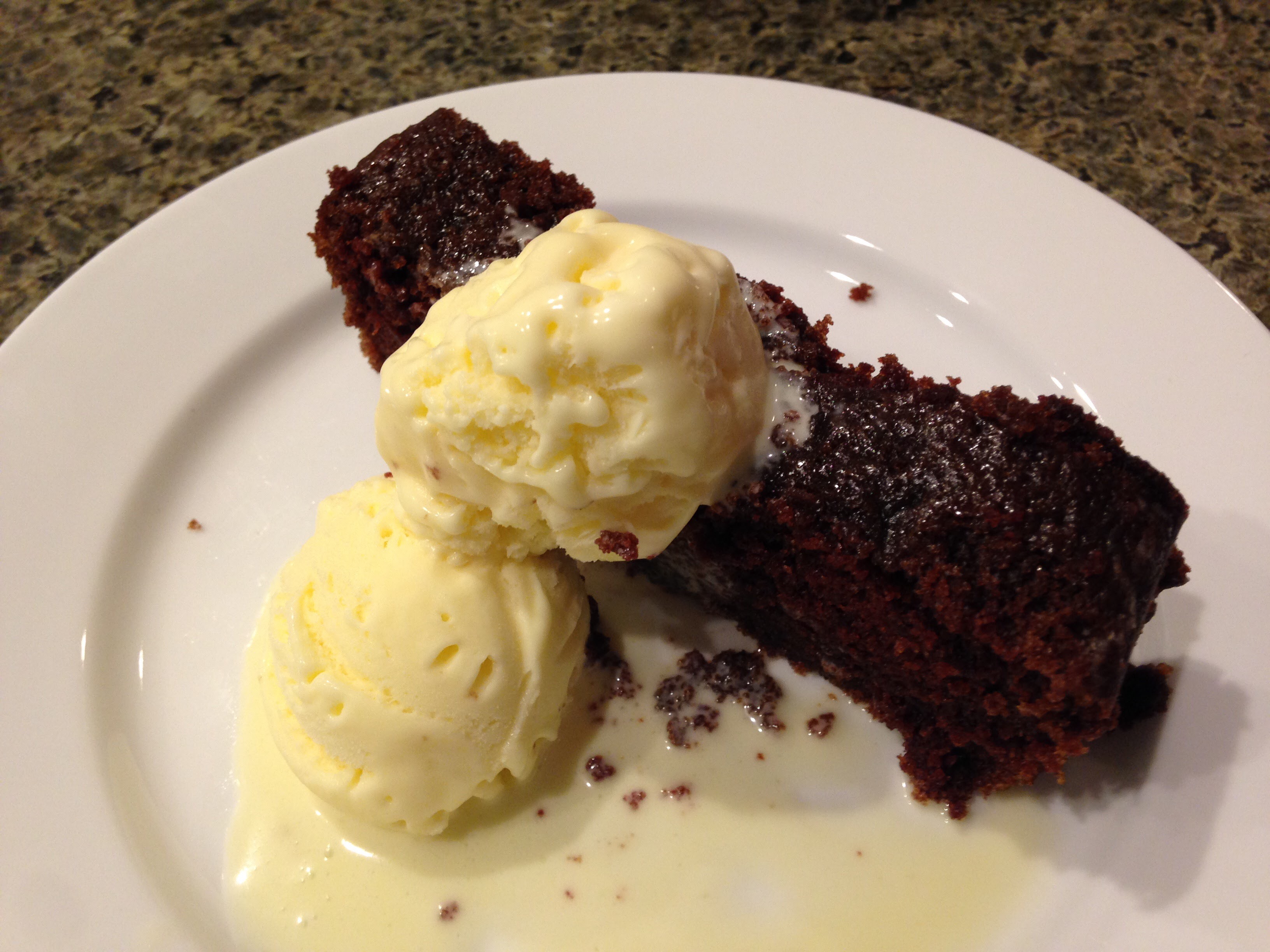 Anthony had just come back from San Diego and didn’t have time to make anything from the cookbook, but he had made chocolate cake and white chocolate ice cream, so we let him crash the party. The cake was nice and moist, though not as good as the chocolate cakes he made from Alice’s Tea Cup and Around the Fire. His ice cream, as always, was incredibly creamy, just the way I like it!